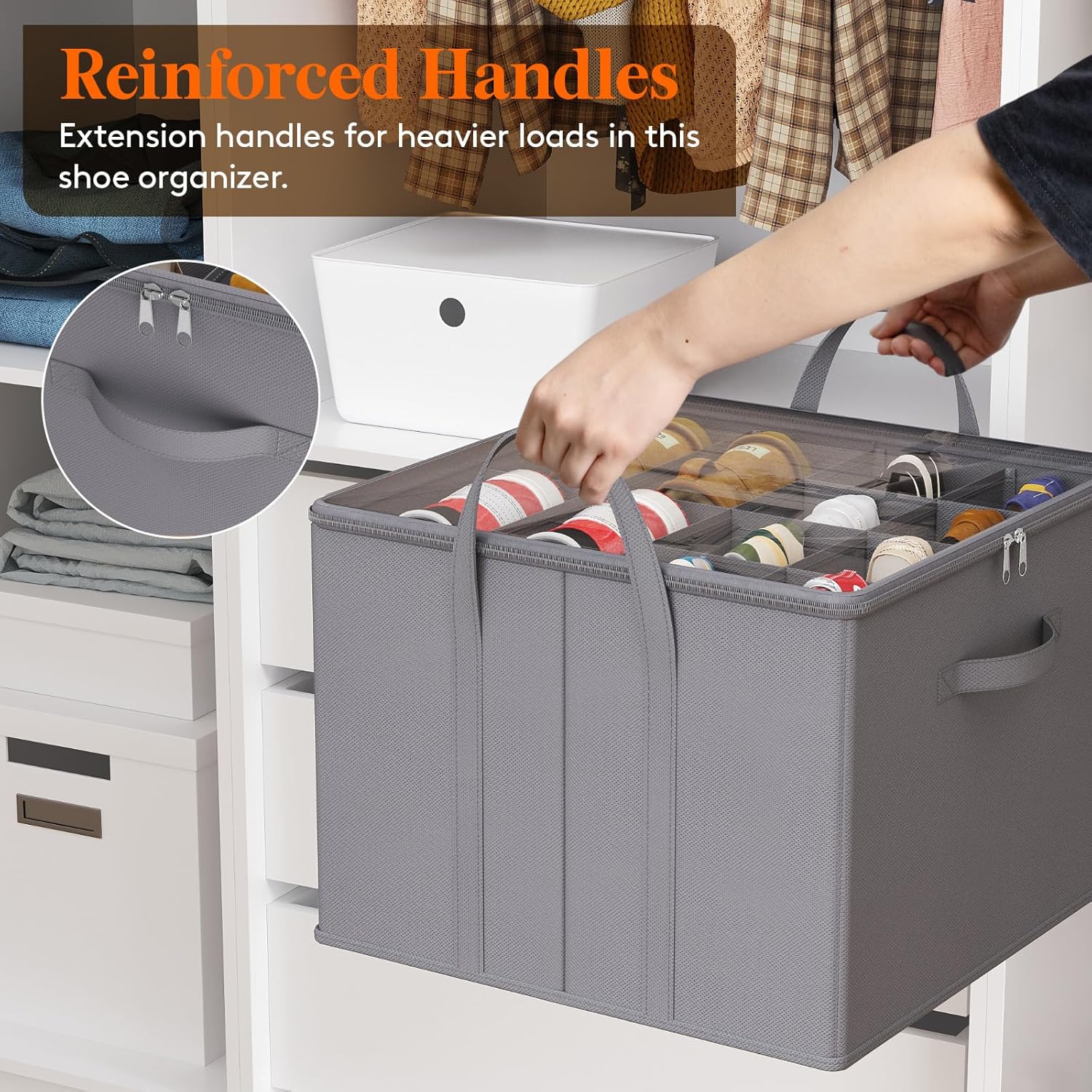 Easy to Access: Featuring a transparent dust cover, this shoe storage organizer ensures easy identification and protection of your shoes. The durable double-sided zipper allows for smooth opening and closing, making it convenient to retrieve or store shoes.