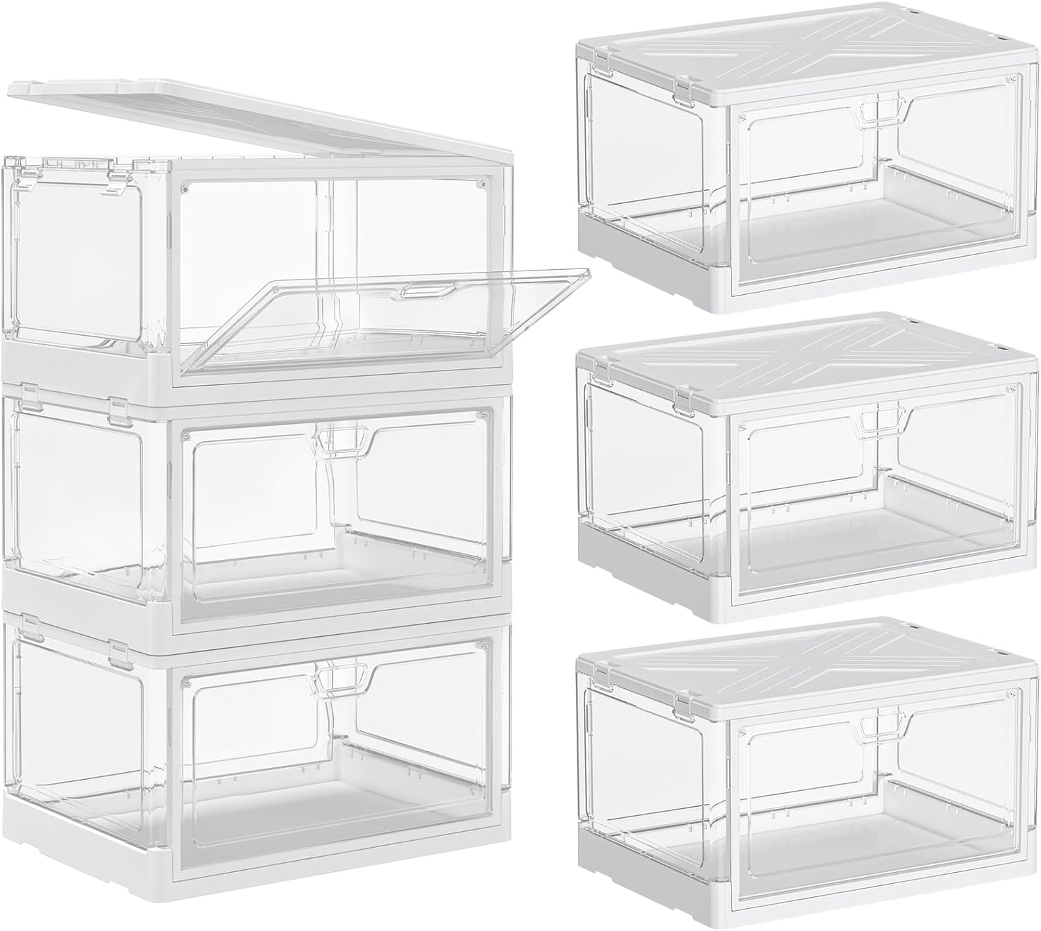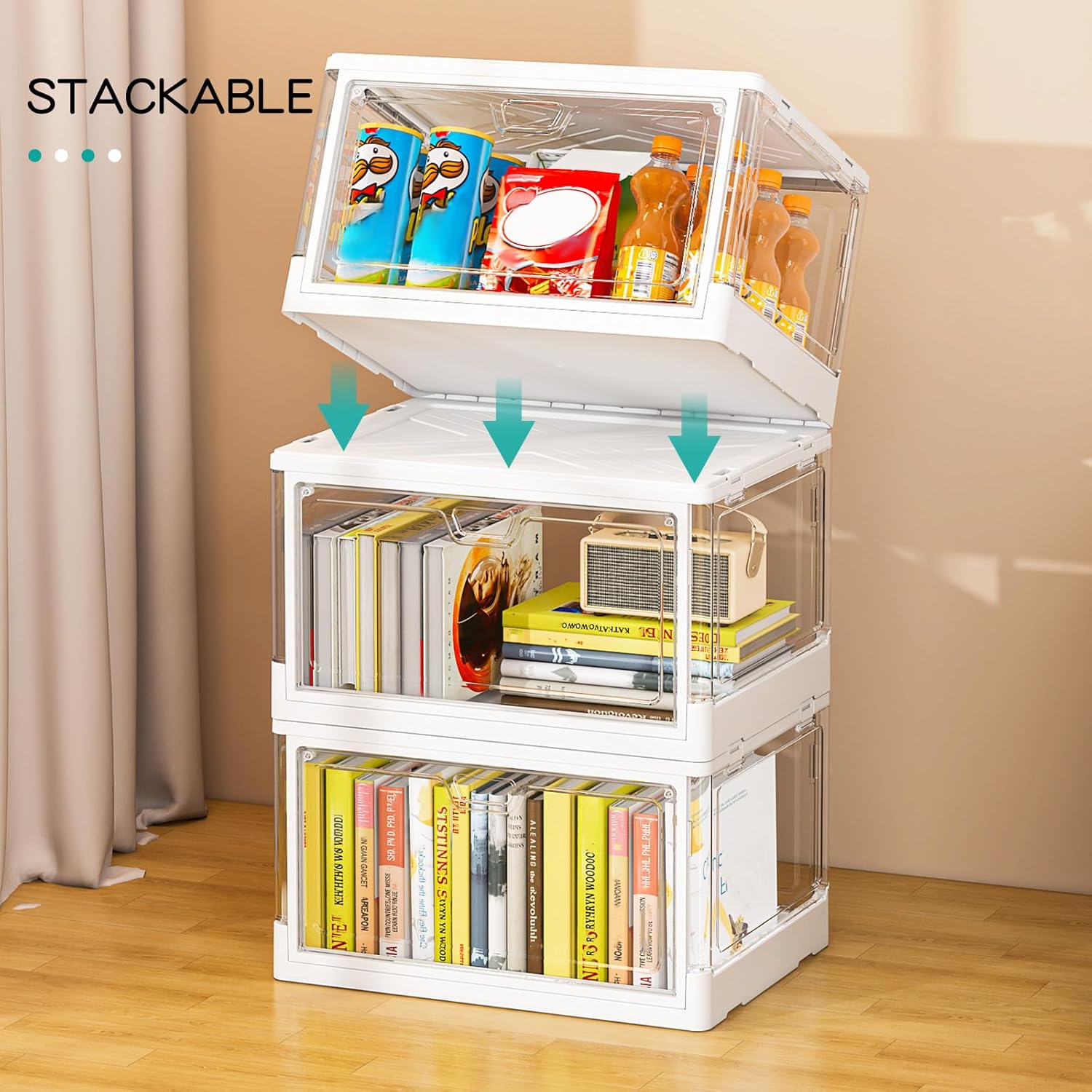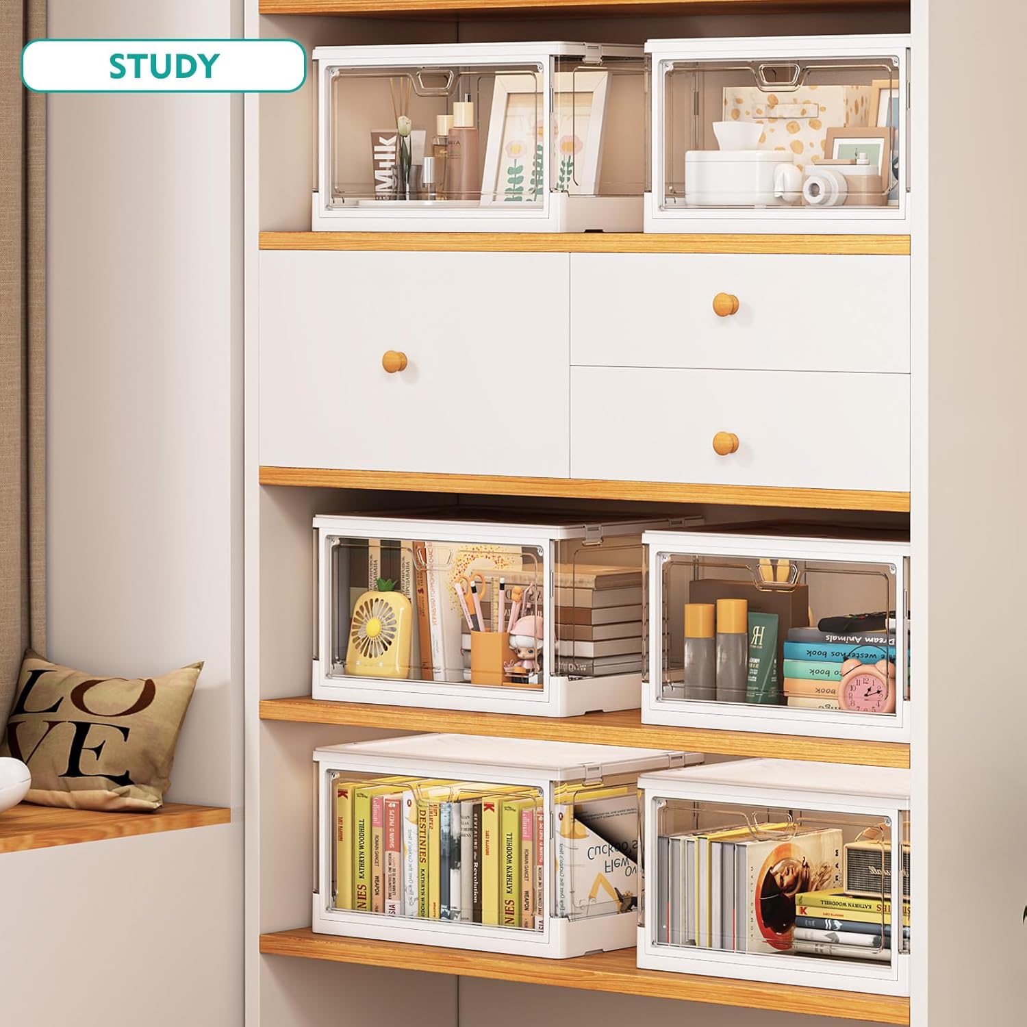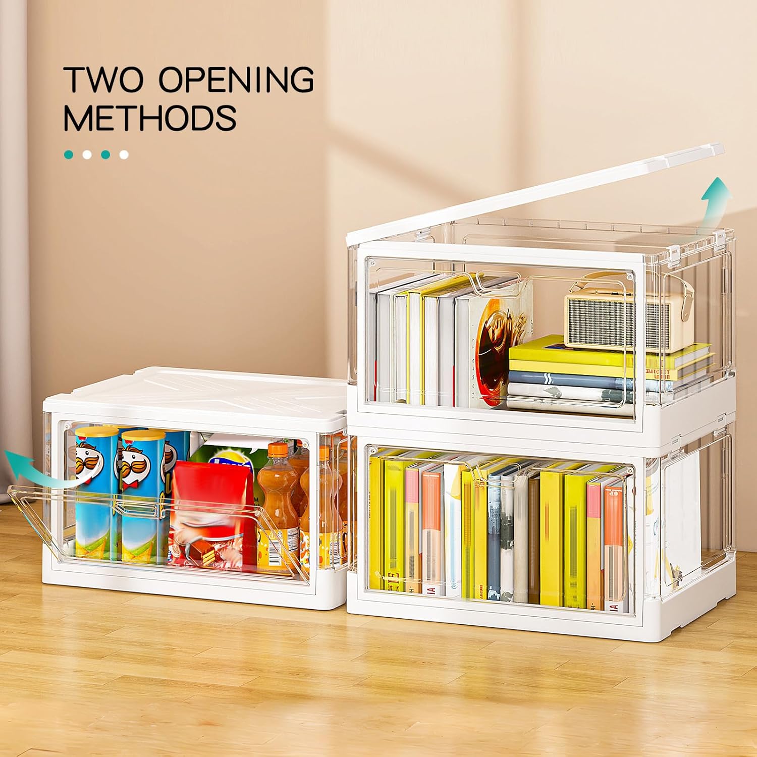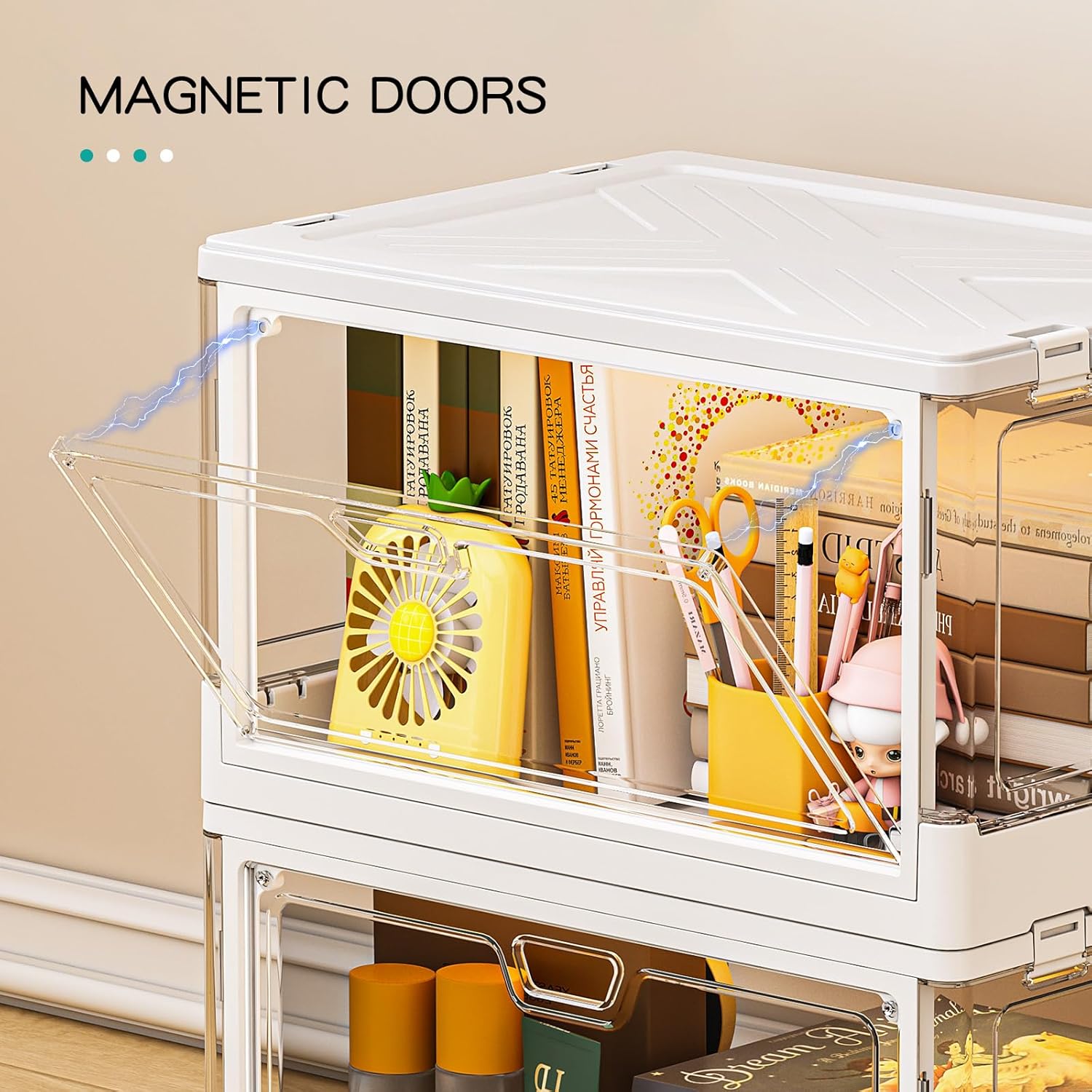 【Magnetic Door Design】 These clear storage bins have a magnetic door that’s easy to open and close. The door keeps the boxes sealed tight, protecting items from dust, and keeping them clean and dry.