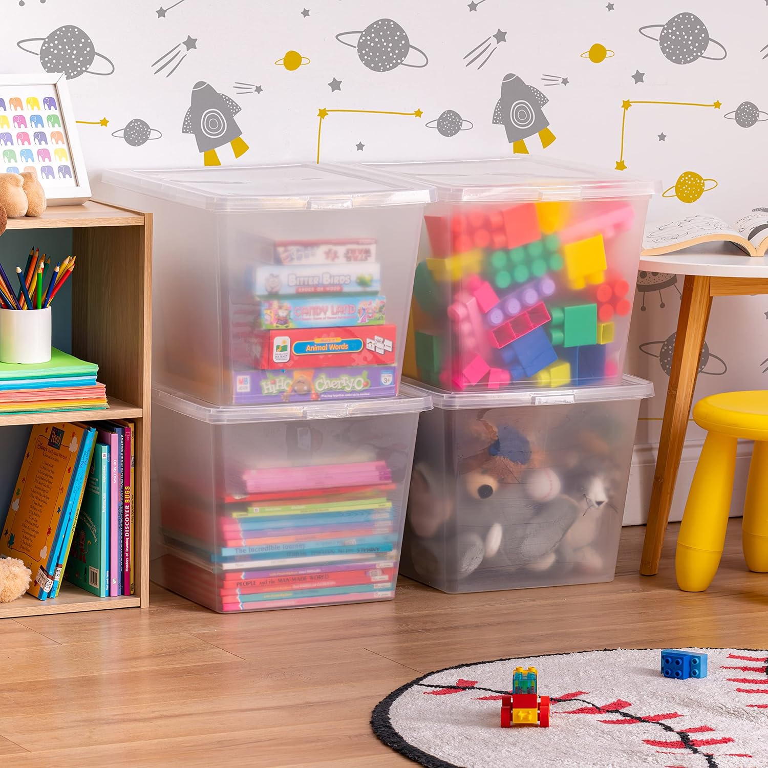 STACKABLE STORAGE: Maximize space in your home, office, or playroom. The lid keeps items safe and allows bins to be stacked on top of each other.
