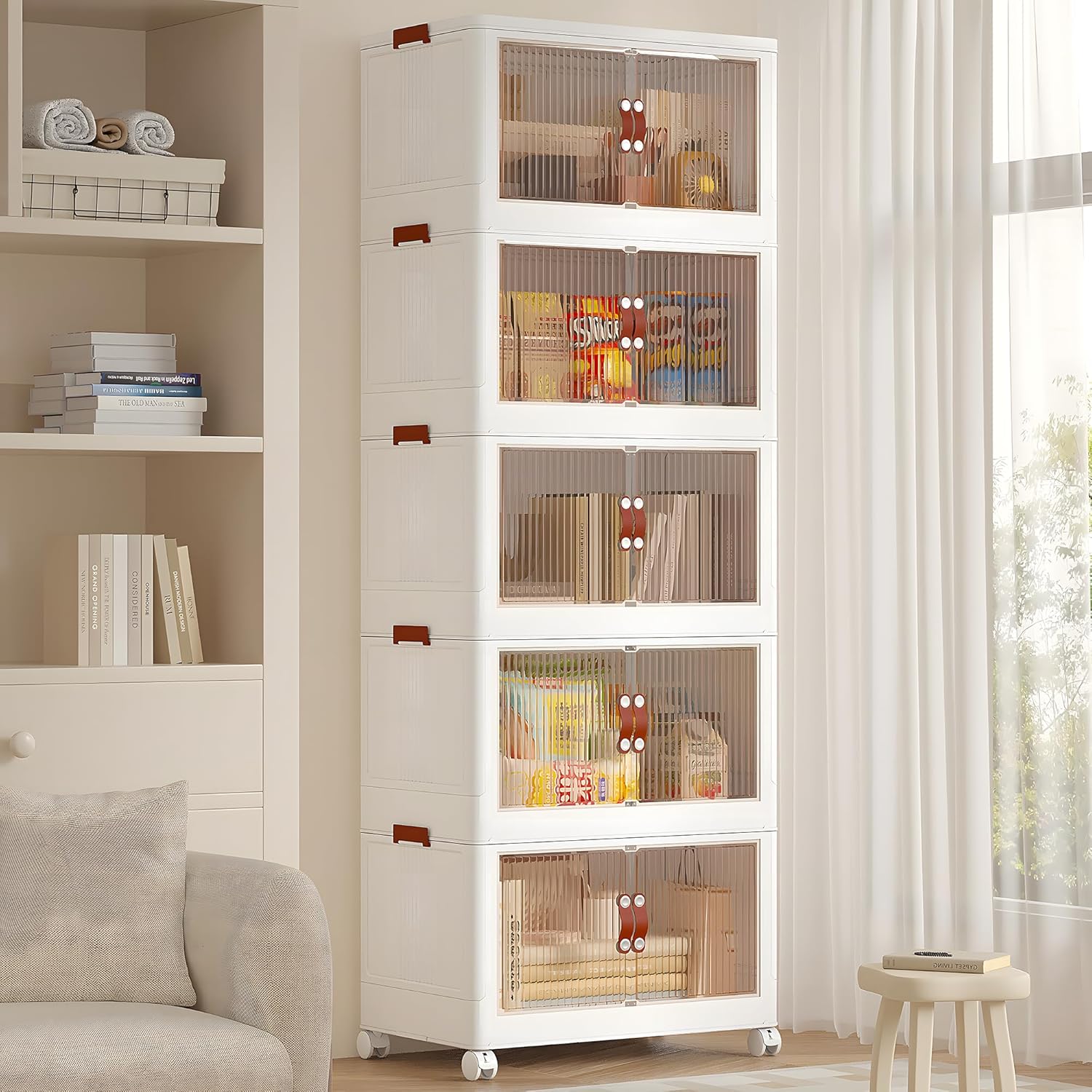 【Foldable & Tool-Free Assembly】These storage containers with lids can be folded and stored to save space. The 5 tier storage boxes only takes a few seconds to snap the components together—easy assembly without the need for tools.