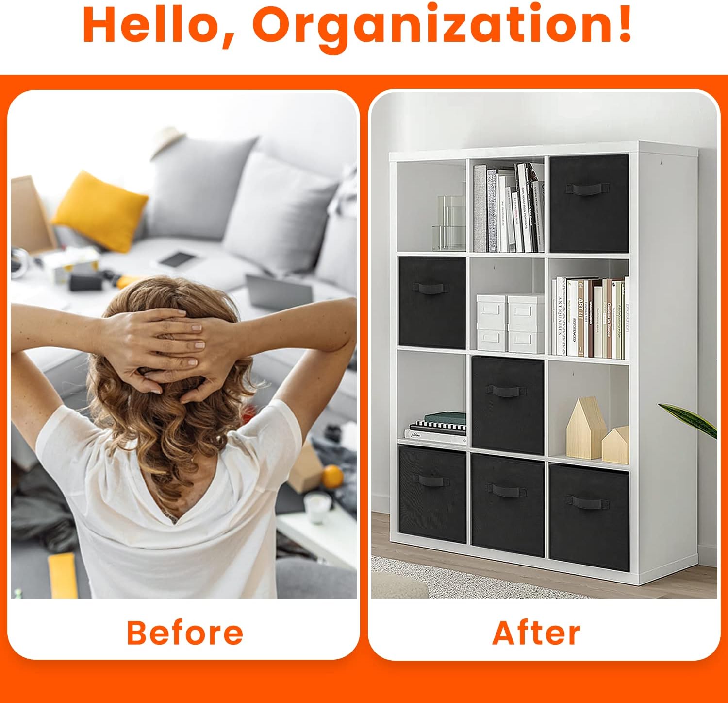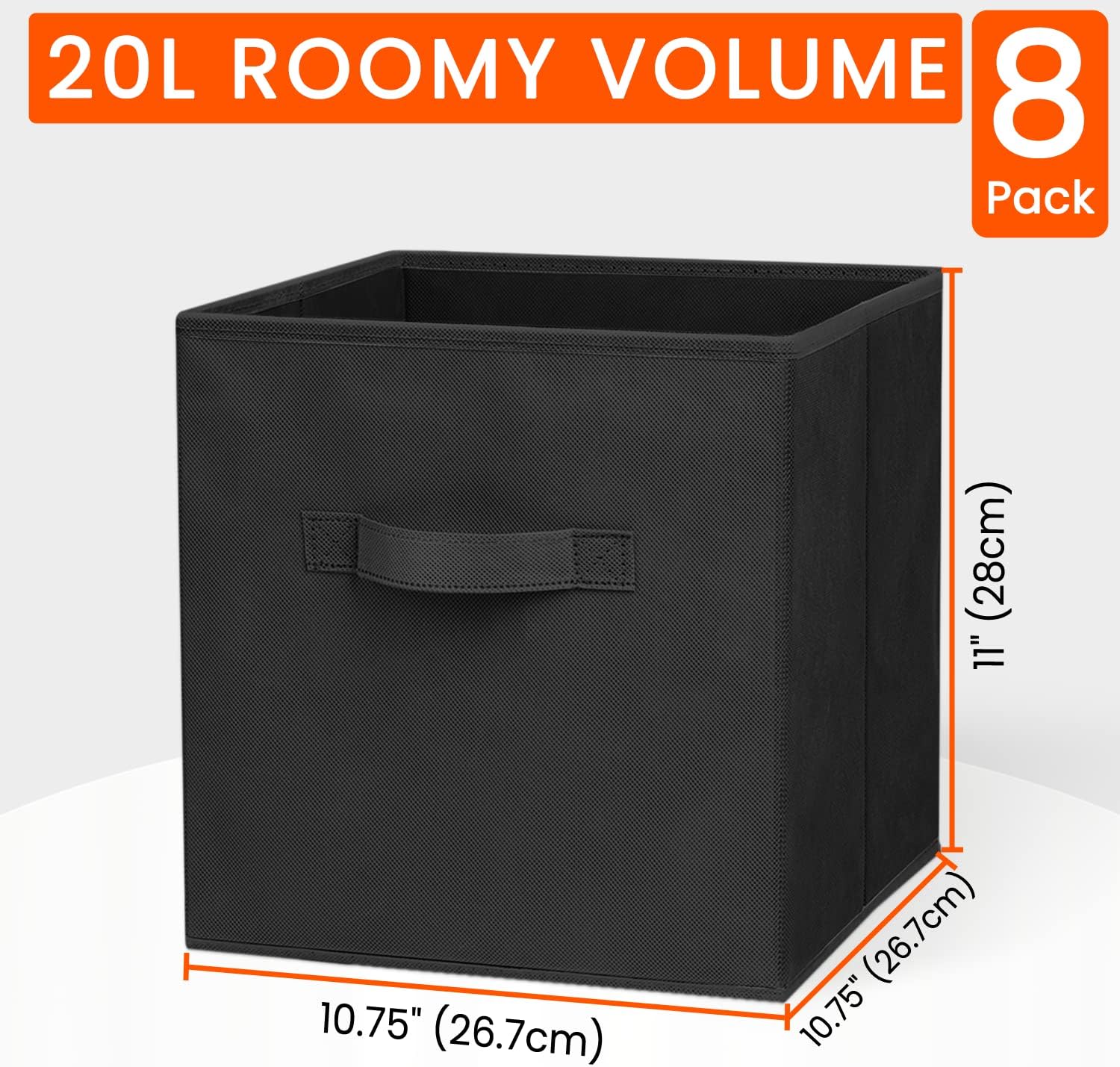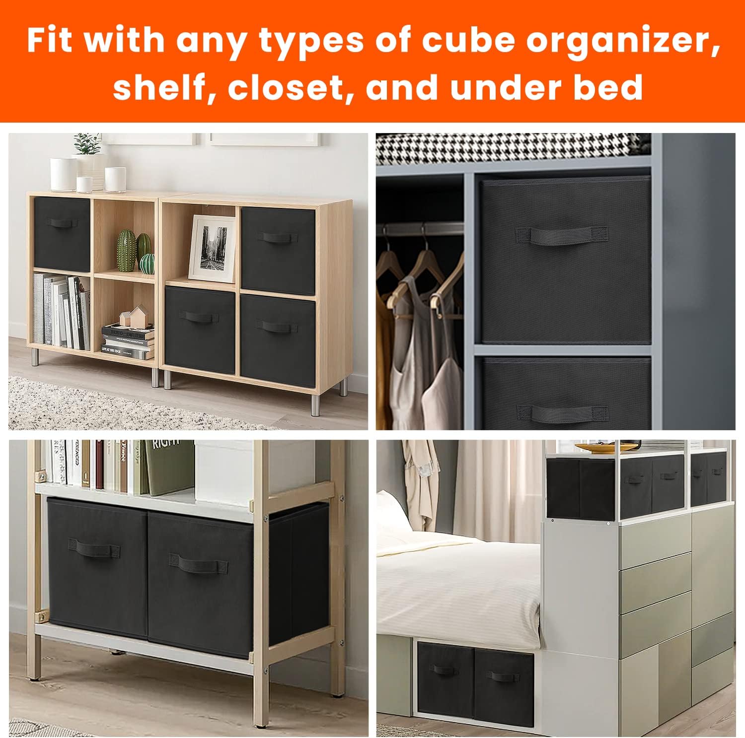 【FIT WITH MOST OF FURNISHING】Measuring 11x11x11 inches, our 8 pack black storage bins could fit perfectly with most of cube organizer, shelf, closet, from bedroom to playroom to laundry room, to store clothes, linens, toyes, books etc.