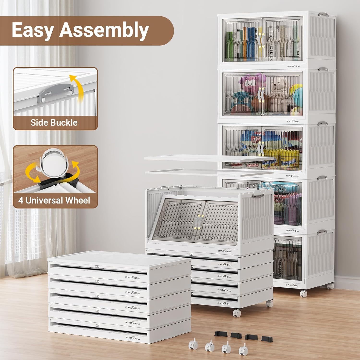 【5 Mins Easy Assembly】The stackable storage bins open front only take 5 minutes to assemble the entire storage cabinet. Thanks to the foldable and stackable design, Broview v8 stackable storage bins can be disassembled and folded at any time when not in use. A great tool for storage in small rooms in apartments or for moving!