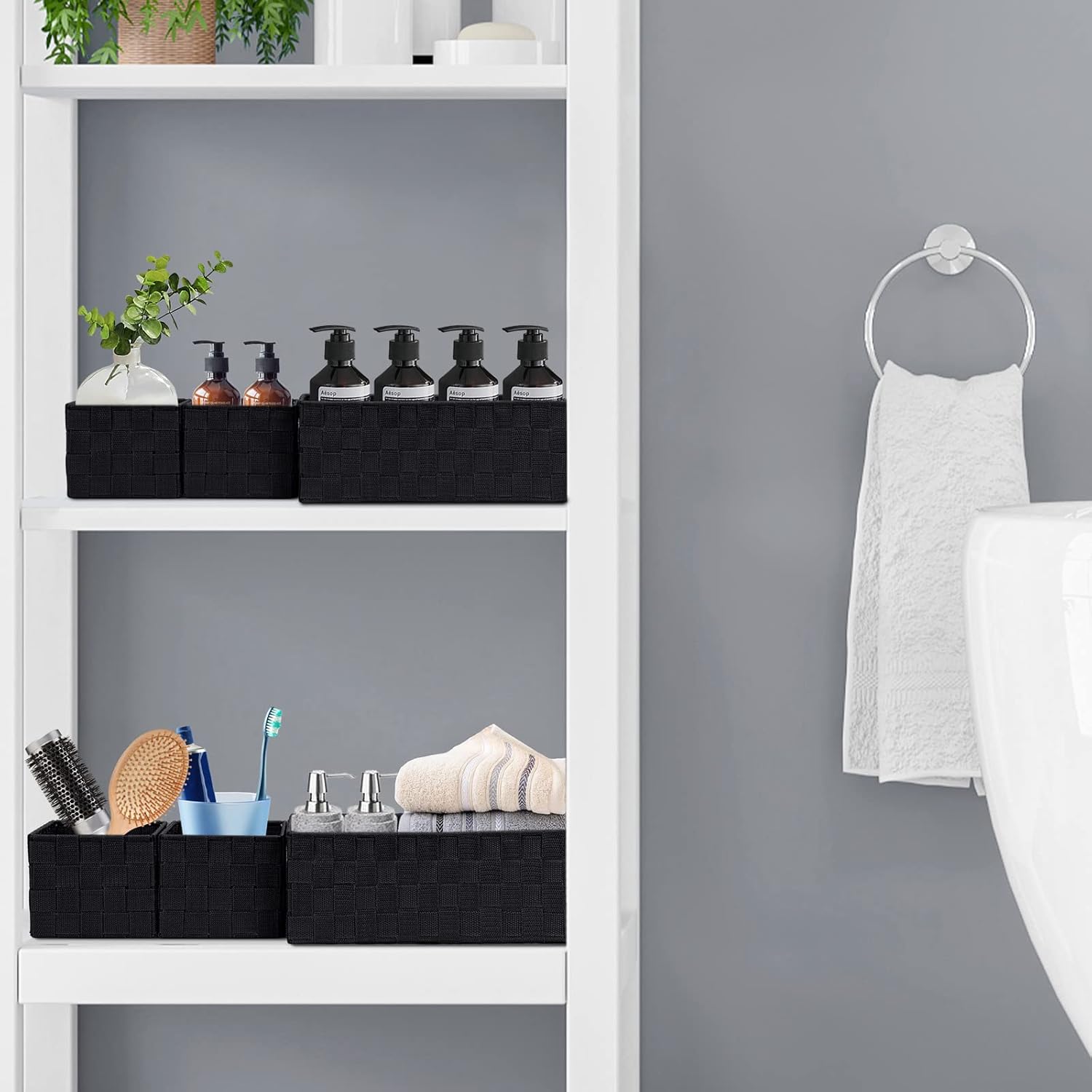 6 Pcs Woven Basket Bins: Provides attractive, lightweight storage while keeping household items tidy and organized — Set includes 6 utility baskets of various sizes.