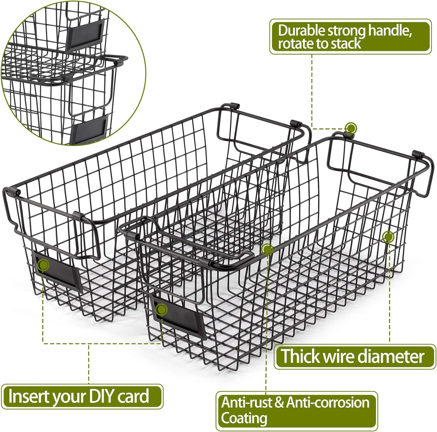 ★High Quality Metal Wire – These baskets are made from premium thick diameter metal wire with top-notch powder coating finish. Be sturdy, anti-rust and anti-corrosion. Rotate the handles to stack and they can bear up to 50lb.