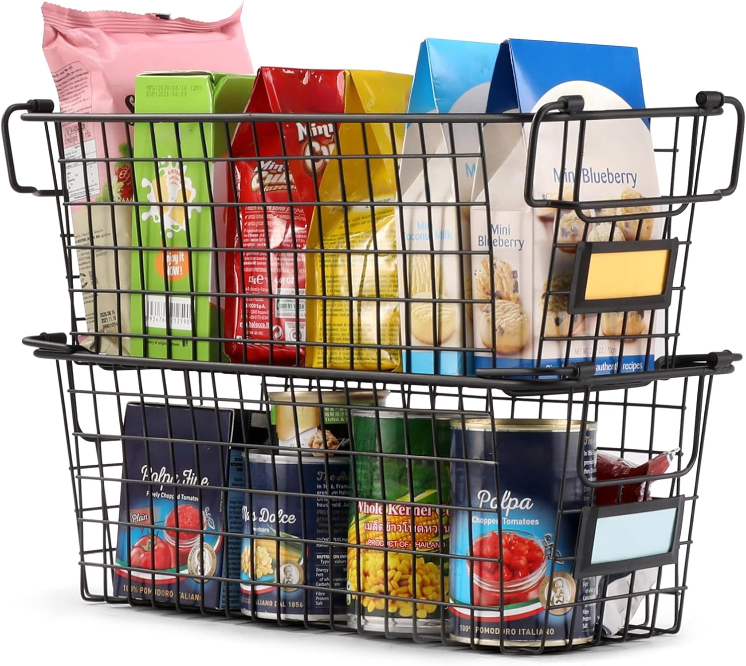 ★Perfect For Pantry Items: Stackable storage basket helps to save space, store and organize various foods. Perfect for kitchen or pantry items, such as snacks, drinks, fruits, vegetables, pastas, canning mason jars, bottles, cans, cookies, bread, chip, baked goods and more