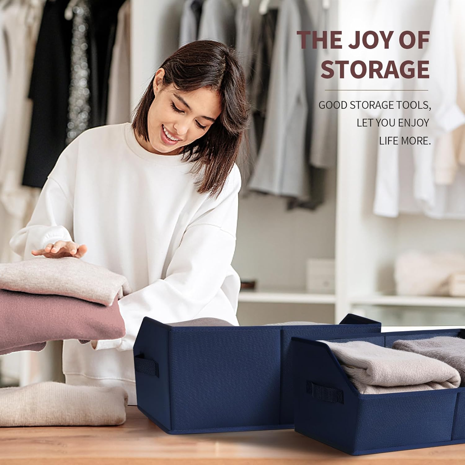 [Easy Storage] The large baskets for storage are designed with two delicately stitched handles, easy to carry and pull off from shelves. Our organizing bins for closet can be folded if not in use, you can store them in your drawer to save limited space.