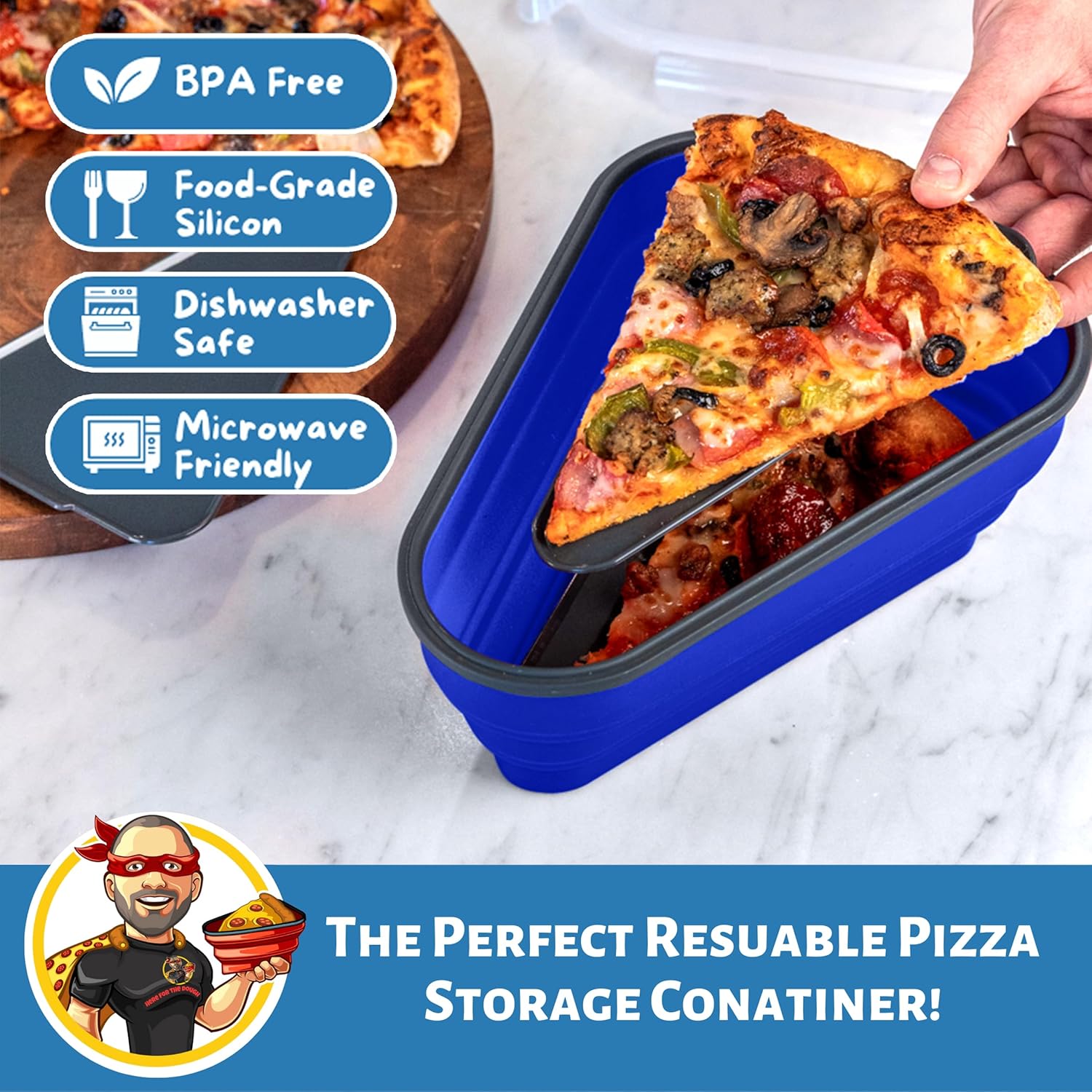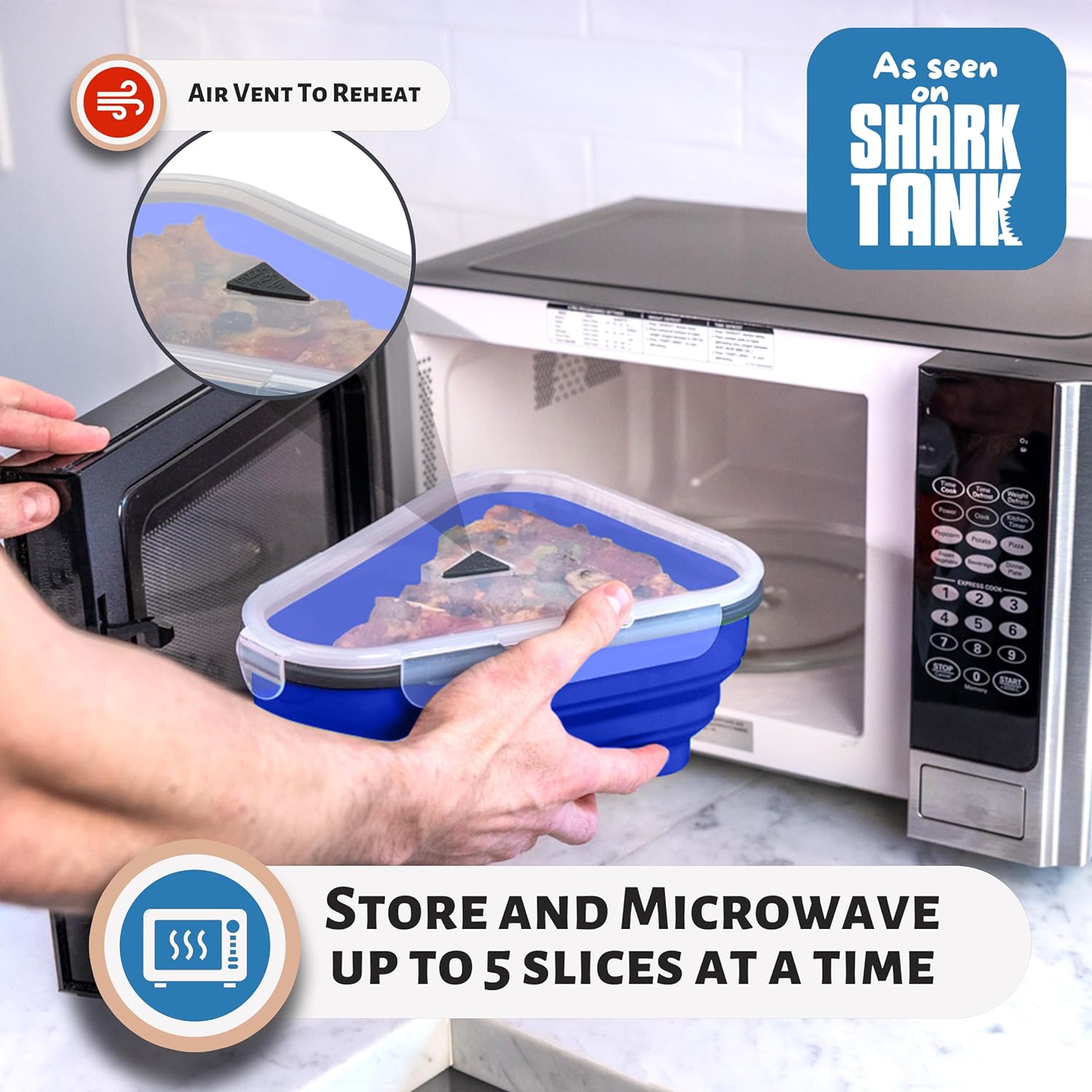 SPACE SAVER – Each pizza container collapses and expands to accommodate the number of pizza slices you have. Perfect for storing leftover pizza without a pizza box taking up the whole shelf!