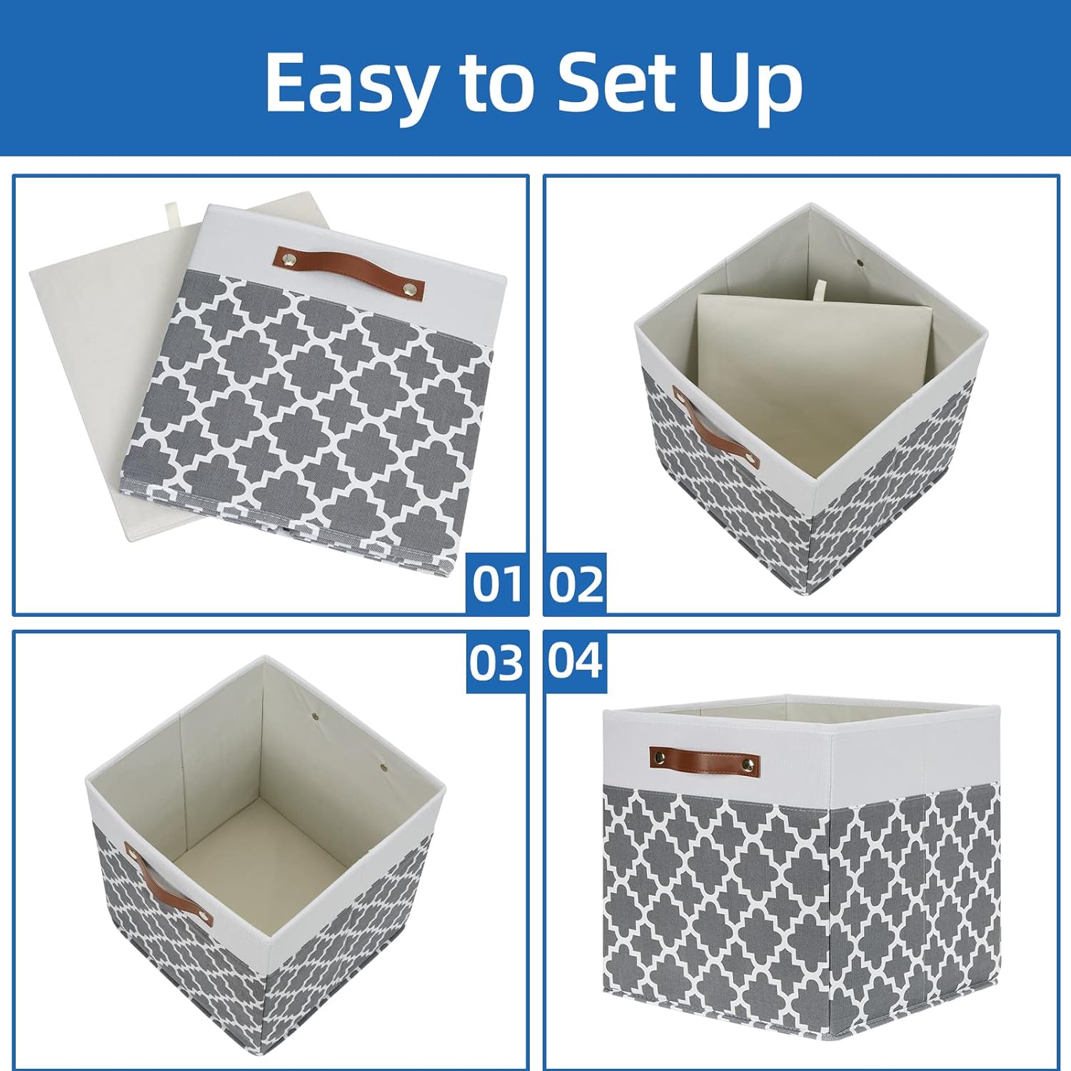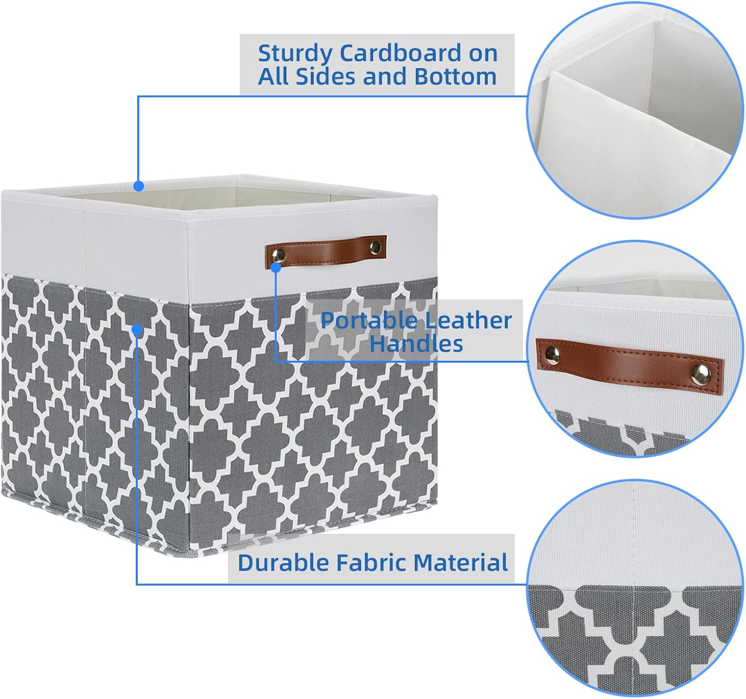 PREMIUM MATERIAL: Our 13 inch cube storage bins are made of sturdy fabric & soft lining, thicken cardboard lined into let the cube storage bin look perfect. Sturdy and high-quality material makes these fabric storage cubes can hold heavy stuff and last a longer lifespan