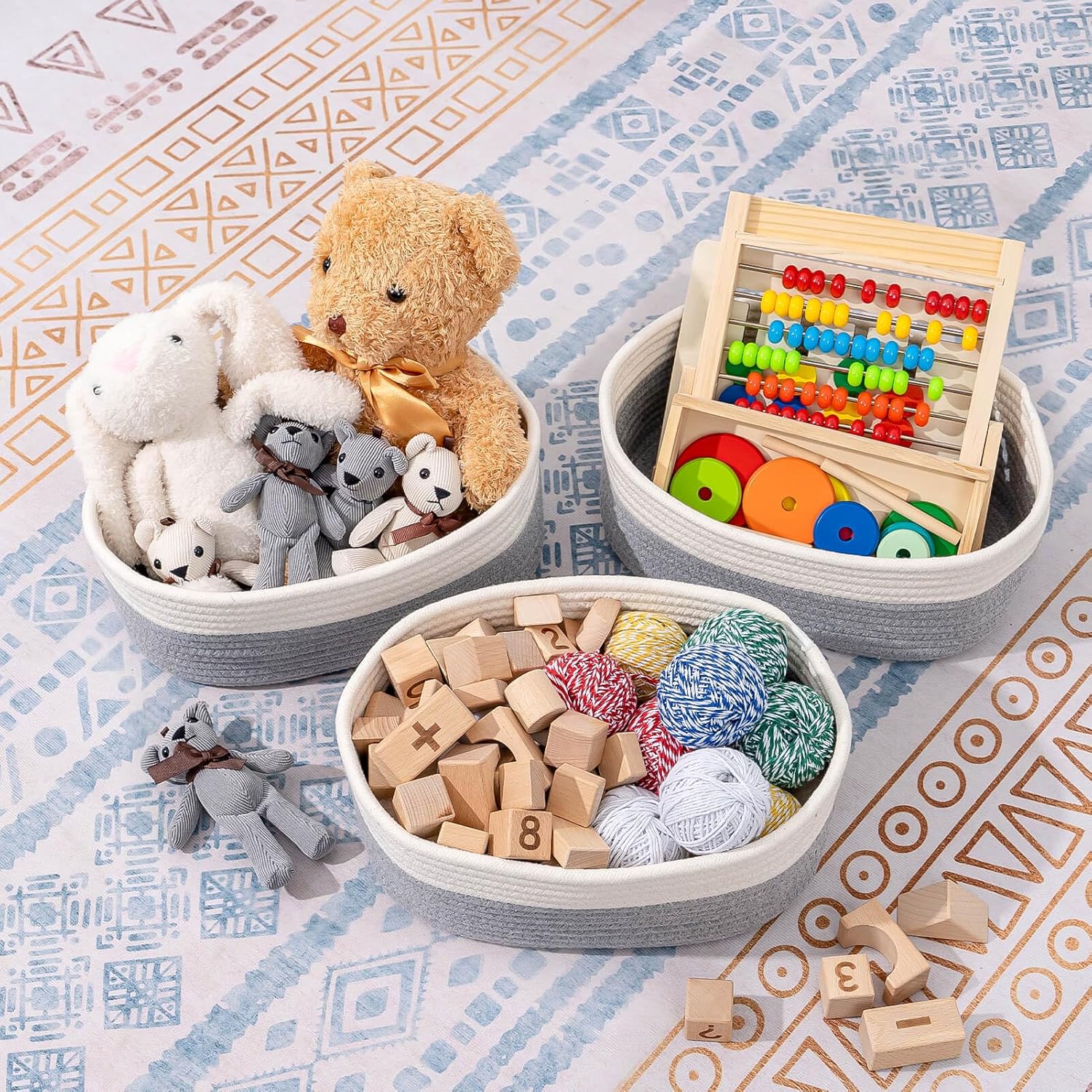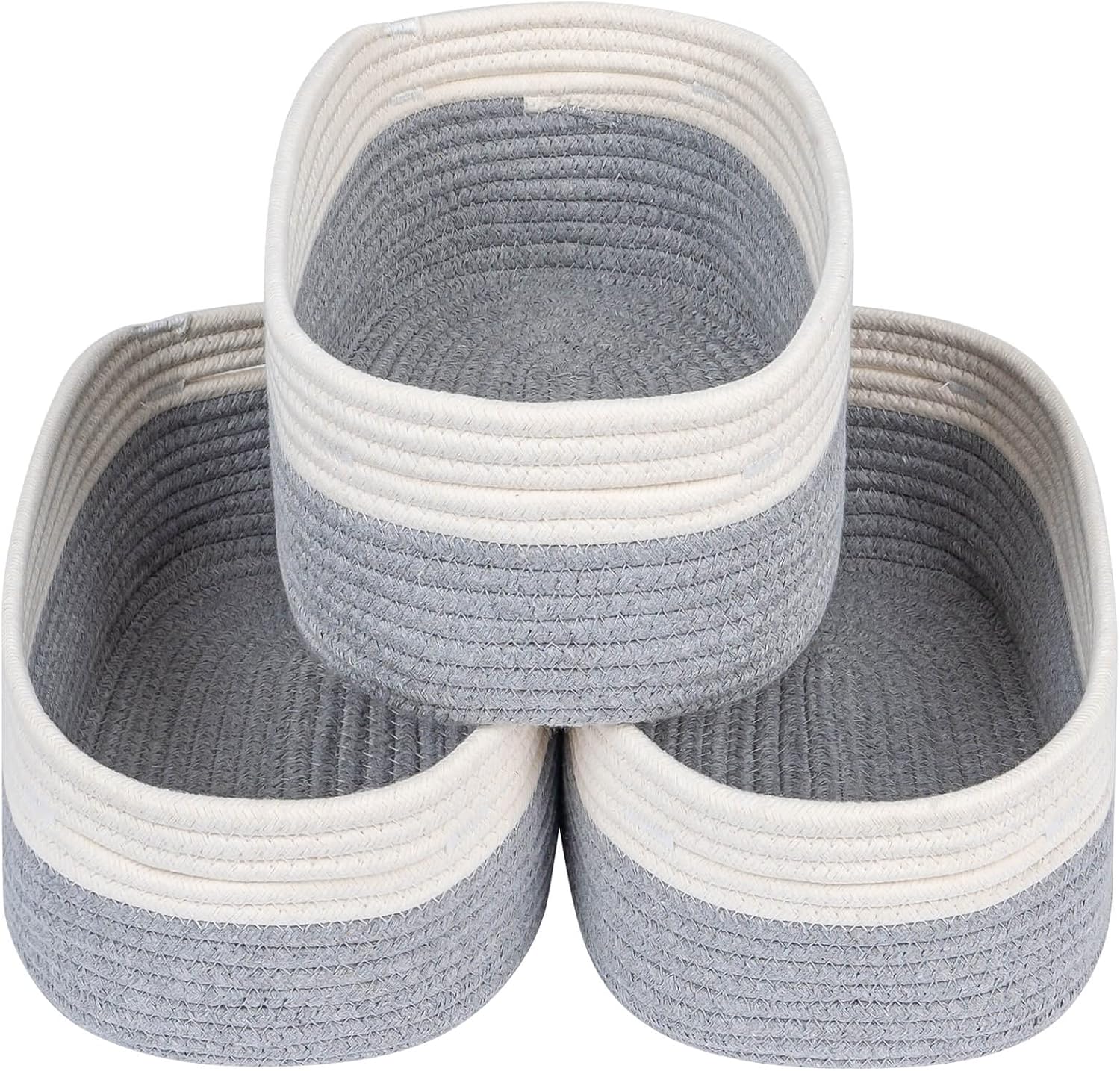 Classy Natural Cotton Rope Storage Baskets-High quality well made. Very sturdy and a cute modern style. Durable woven rope, Long-lasting, skin-friendly, soft and attractive. You need these adorable baskets to put some supplies in, diaper, jewelry, cosmetics, makeup brushes, tea bags, storing smaller toys, toddler socks, candy