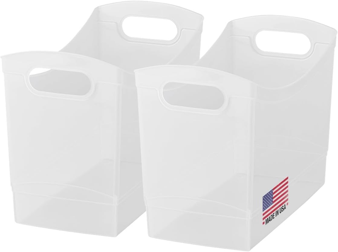 The sturdy, banded rim adds a stylish touch to the bins, while the modern, clear design works well with any home décor.