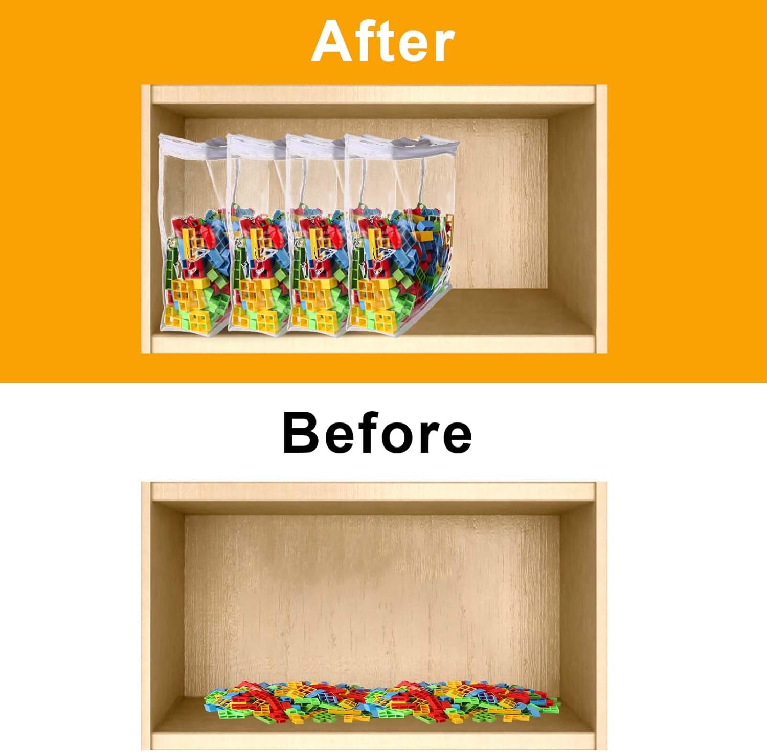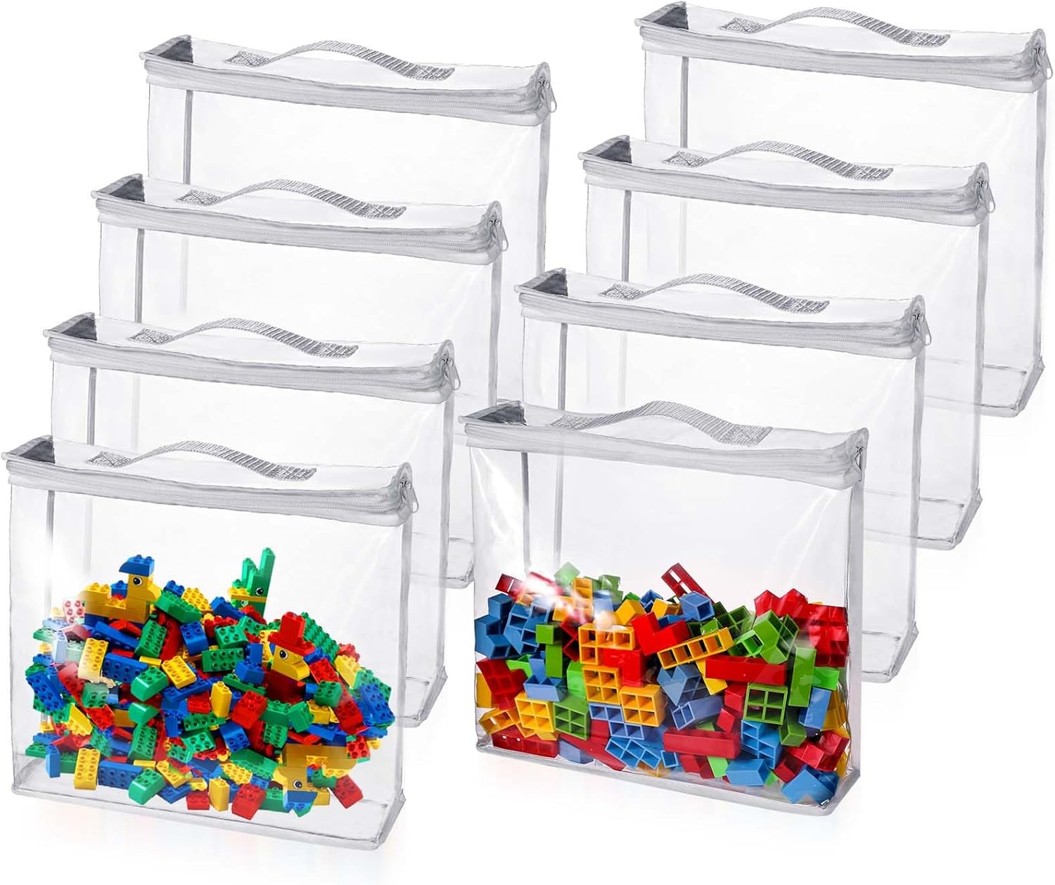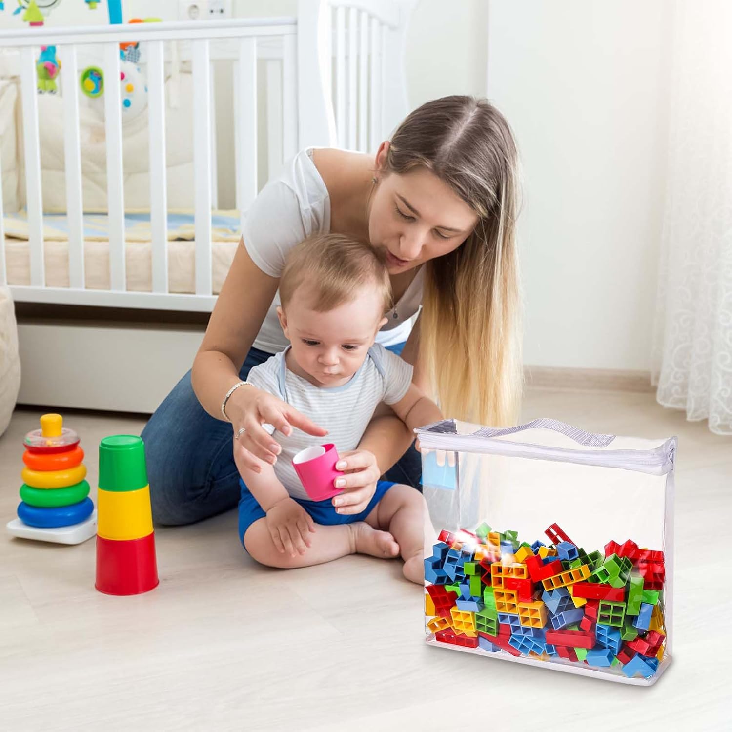 Easy to Store: The bags are designed with zippers and can fully open to store items. They can be stacked and stored to save space, helping classify and organize building blocks, toys and puzzles.