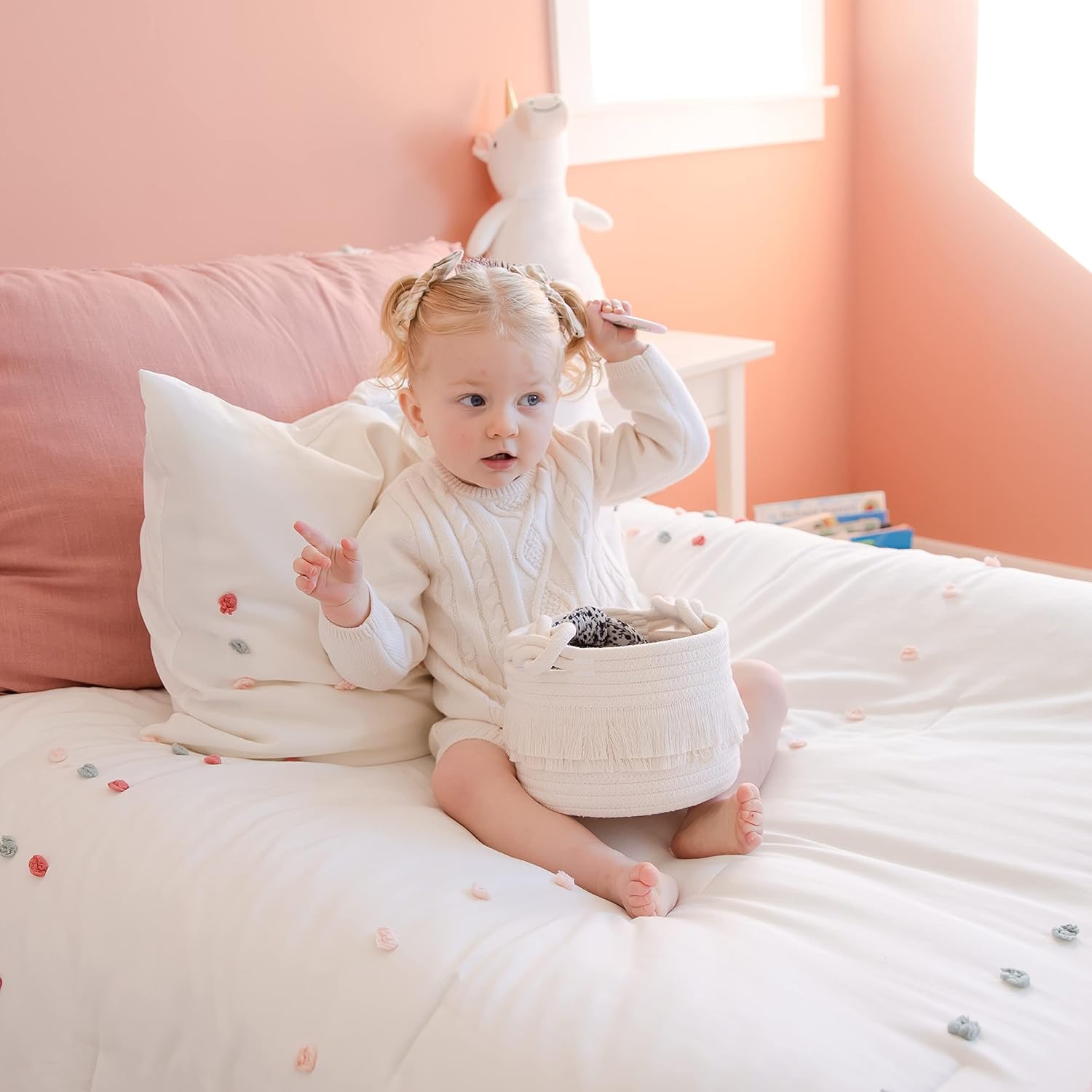 MADE FROM SAFE, NATURAL COTTON: Nom, nom, nom! When you’re revamping the nursery with some seriously stylish and cute toy basket, your little one is bound to turn basket handles into their own personal teethers. No worries, mom! Our woven baskets for storage are made from 100% safe cotton, so they’re completely safe for little mouths and hands. No toxic chemicals or ingredients! Plus, you won’t find a single faux leather anywhere that could be harmful for your little one or your pet.