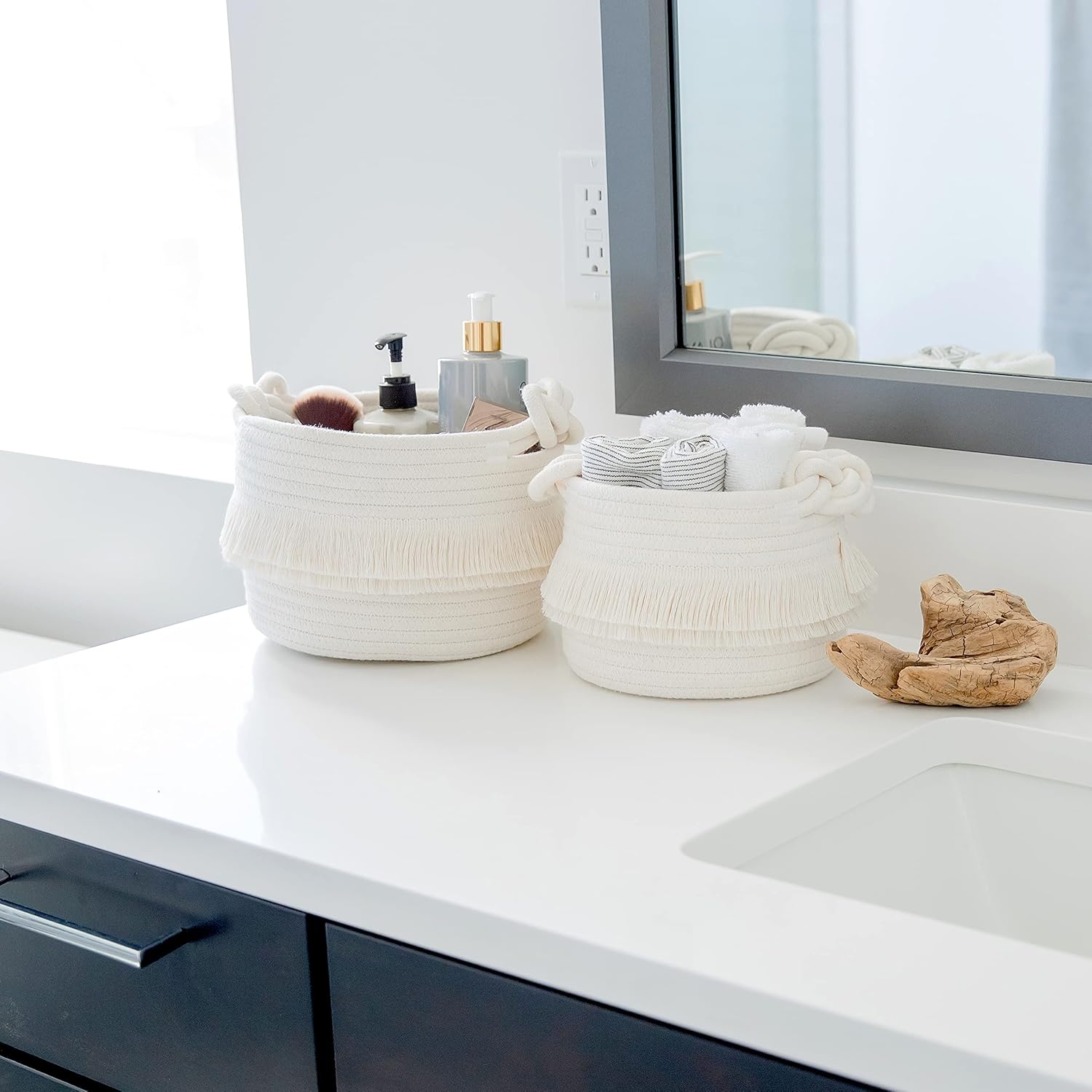 ELEGANTLY DESIGNED TO MATCH ANY INTERIOR THEME: Classic colors that match ANY design scheme? Yes, please! Our woven baskets come with 8 colors for your selection that matches your interior design from boho chic to rustic farmhouse, modern, scandinavian and traditional design schemes, our round cotton rope baskets with tassels make the perfect accents to any decor. Plus, you won’t find a single tacky logo anywhere in sight!