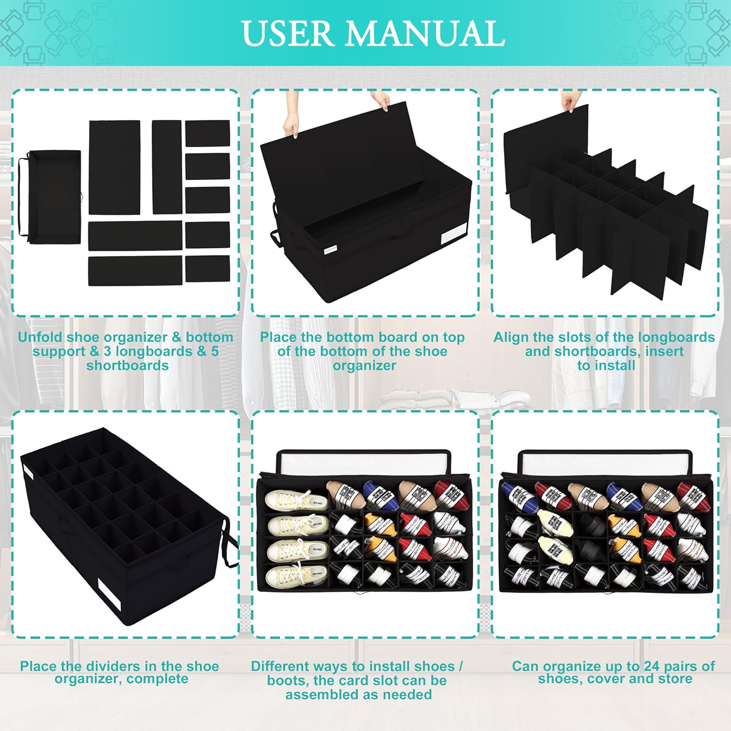 Adjustable Storage for Boot & Shoe Boxes: The unique combination of card slots makes shoe box can be adjusted to shoe size for easy storage. Our shoe bins are easily storage in closet, wardrobe, entryway or top shelf and can be folded flat to save space.