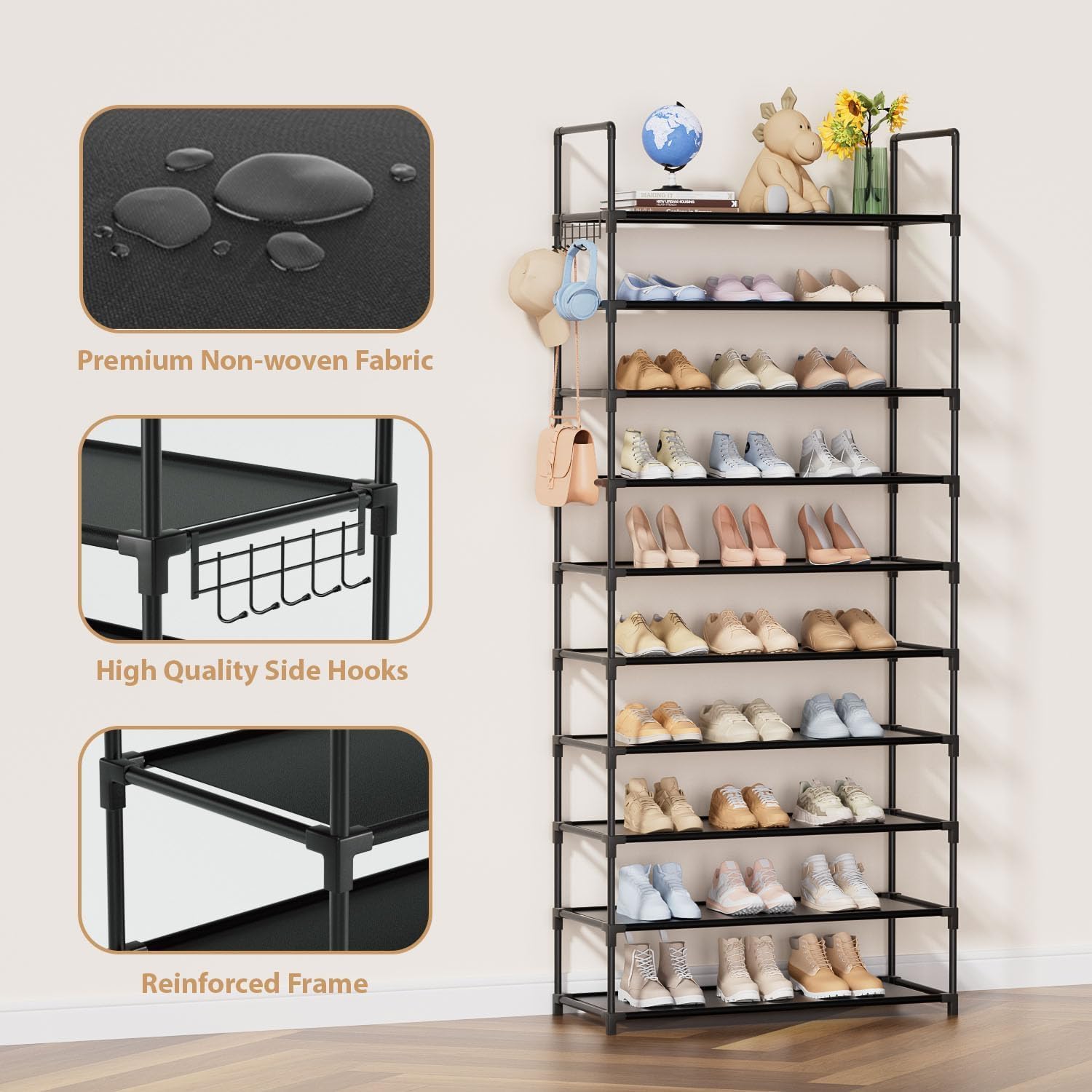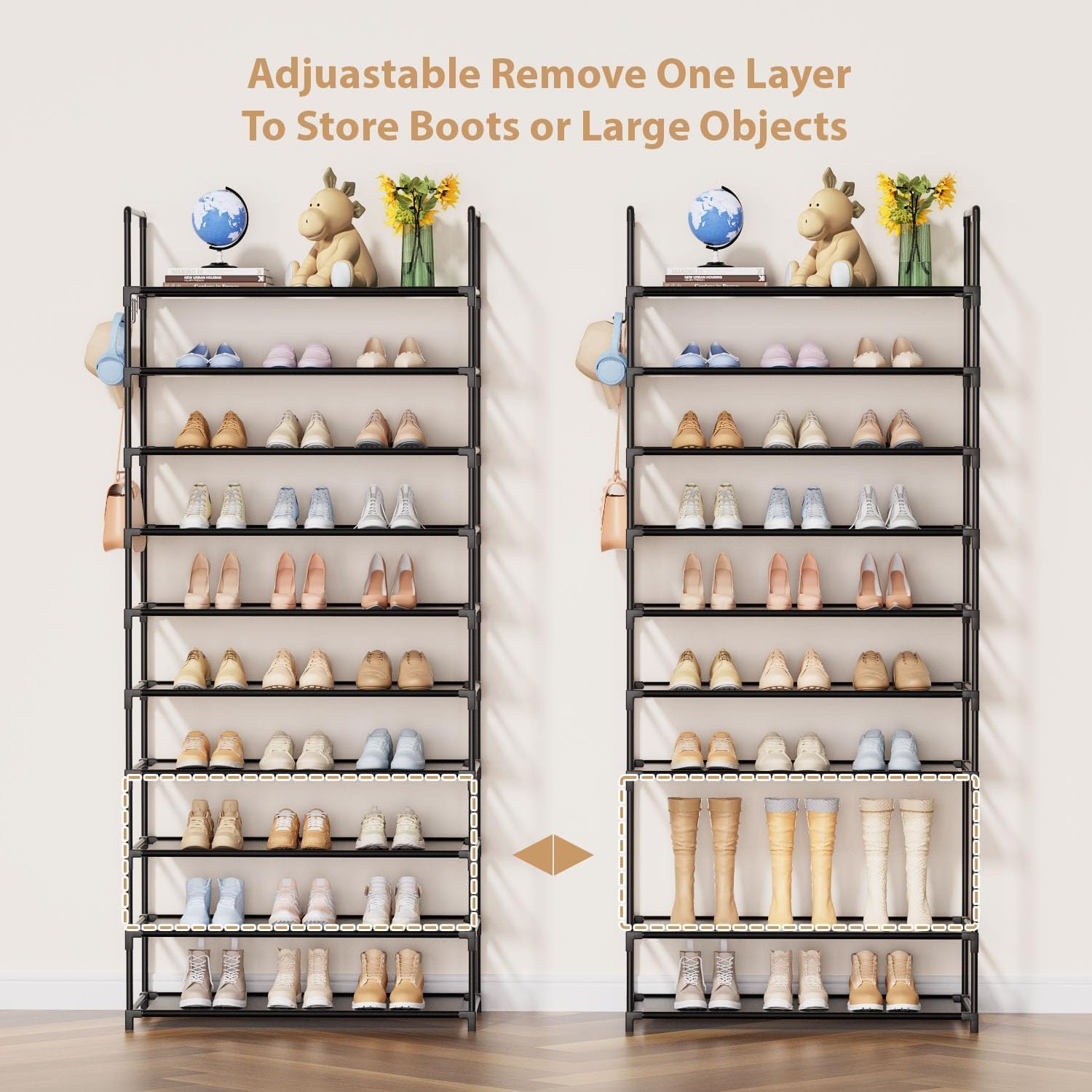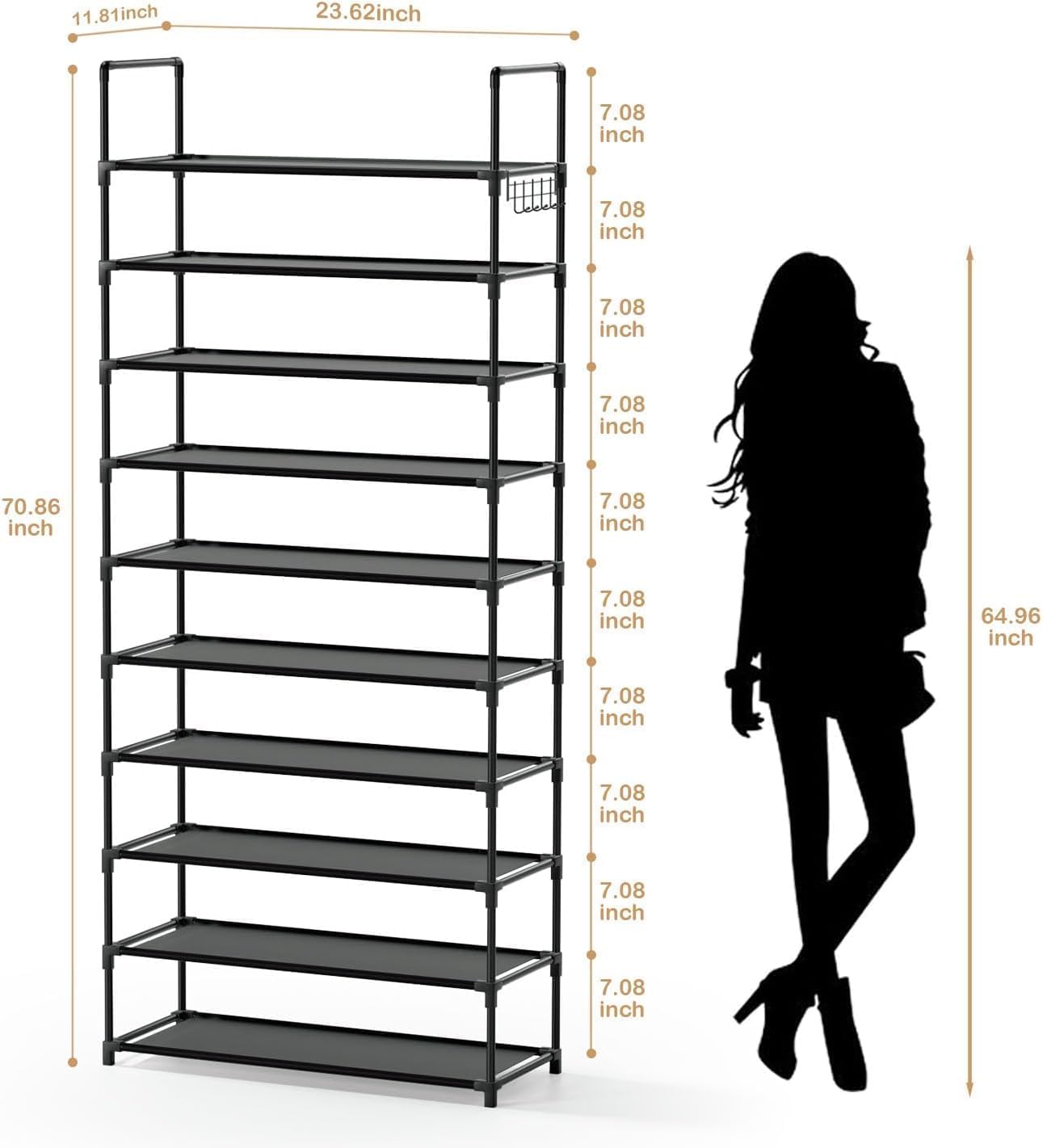 PACKAGE INCLUDE – 1 tall shoe rack with 10 tiers, holding up to 40 pairs of shoes. Perfect for maximizing your closet space and keeping footwear organized in style