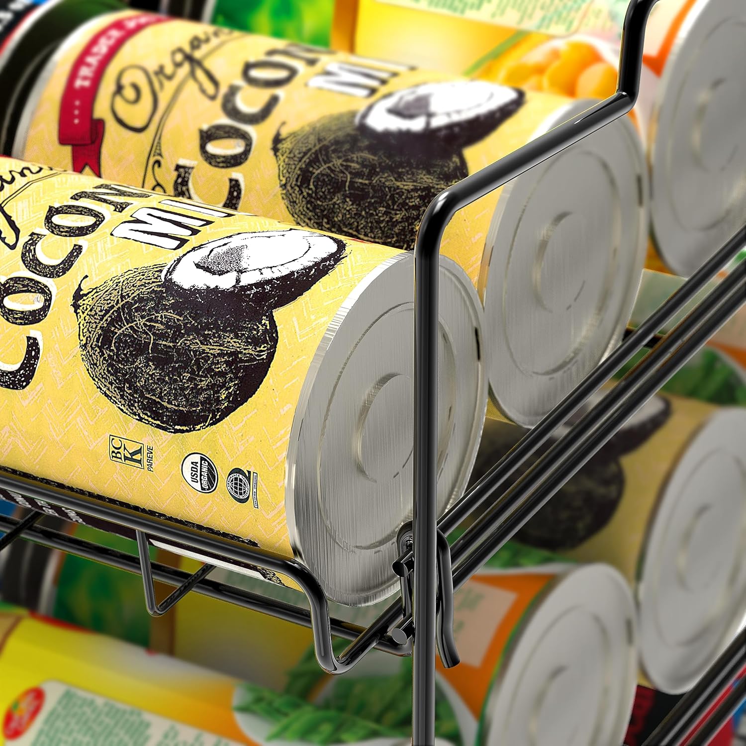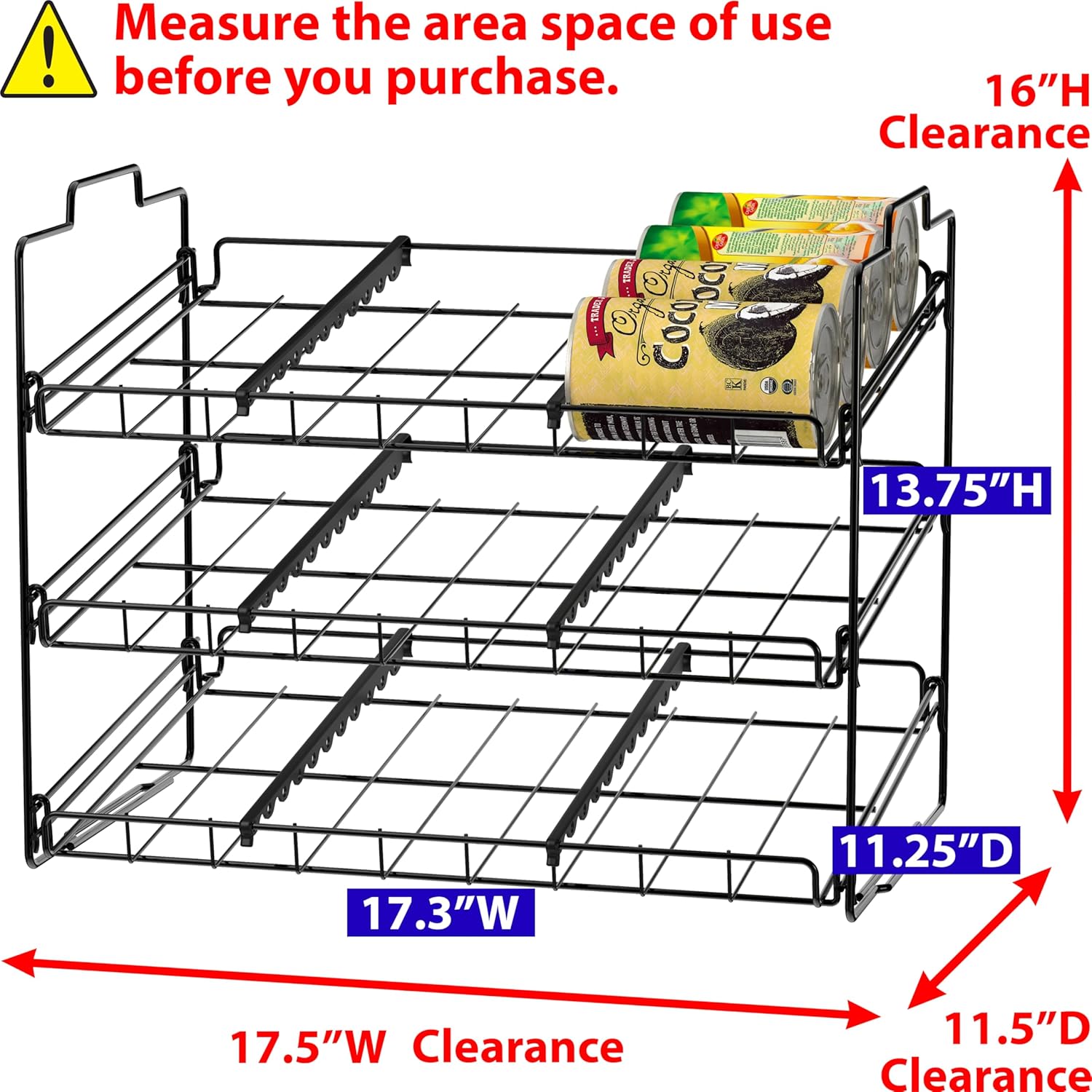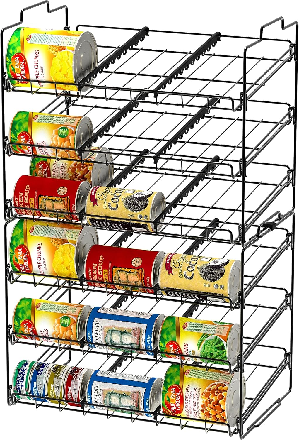 Store up to 36 Cans w/ various sizes. Capable of stacking, a smart way to increase the storage sizeMade from heavy gauge steel, sturdy and strong, Elegant Chrome FinishAdjustable plastic dividers provide more flexibility to stores your groceryUSPTO Patent USD699986