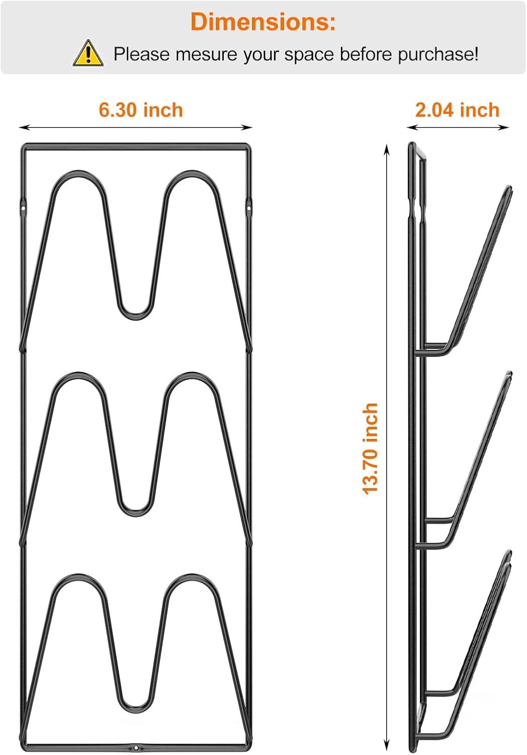 Space Saving: The 2 pack pot lid holder comes with 6-tier capacity. Our lid rack can be placed on the countertop wall, cabinet door, or even under the sink, this space-saver is the perfect solution for your cooking lid storage needs.