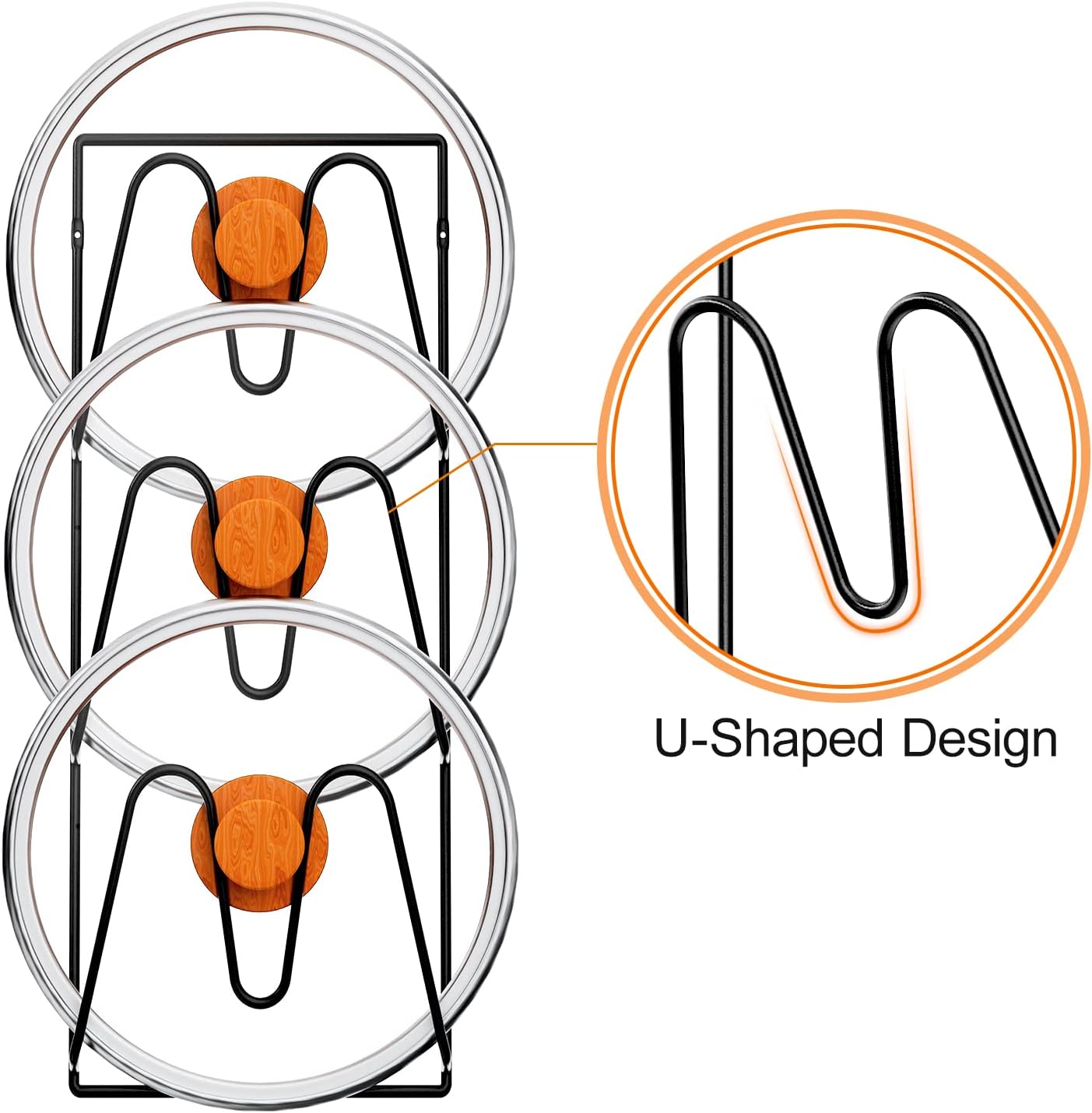 U-Slot Design: The handle slot adopts a U-shaped design, and can hold different types of handle lids, rounded, ear knobs, etc. Secure and stable holding lids to prevent falling, our pot and pan lid holders are worth buying.