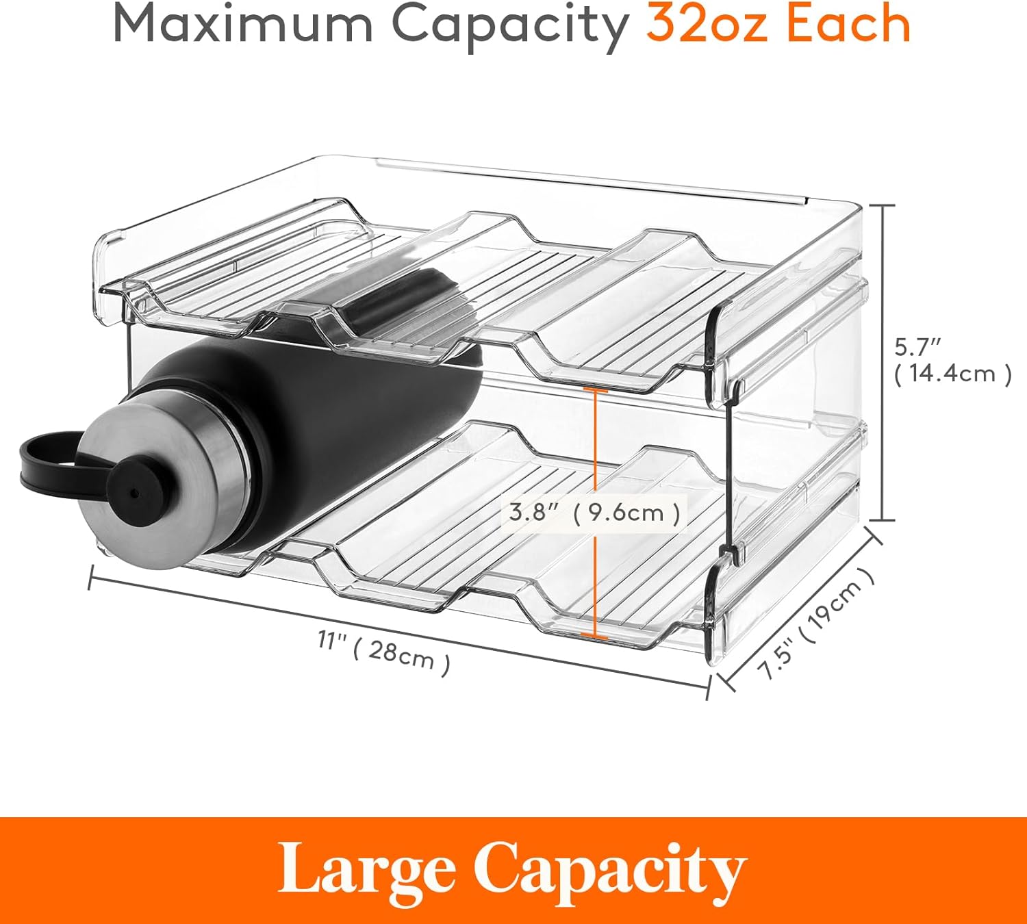 Designed to Fit: Carefully designed to fit most pantry cabinets and refrigerators, each storage box measures 11 x 7.9 x 3.8 inches (28 x 20 x 9.6 cm), which can hold multiple sized water bottles, bottled drinks, energy drinks, 32 oz containers etc. It can also be used as a wine rack in the kitchen and cellar.