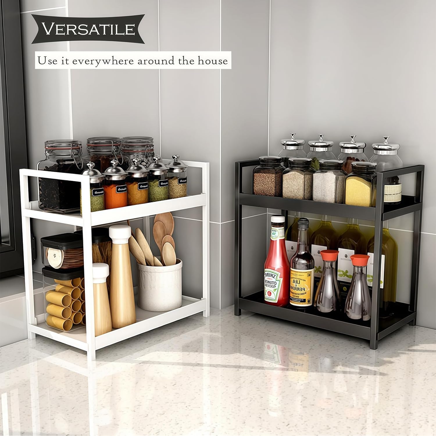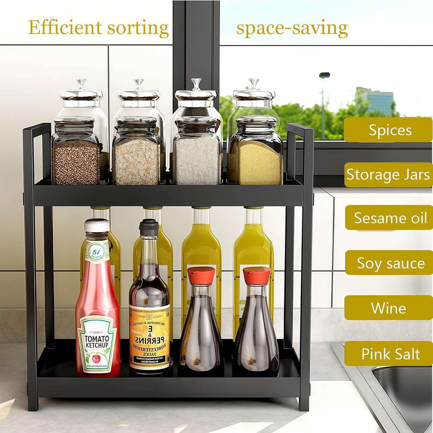 [Versatile Kitchen Counter & Cabinet Organizer]Suitable for both countertop and cabinet use, this kitchen cabinets organizer helps declutter your kitchen space. Perfect for spices, herbs, oils, and more, it’s the ultimate kitchen shelf organizer and storage solution for your home