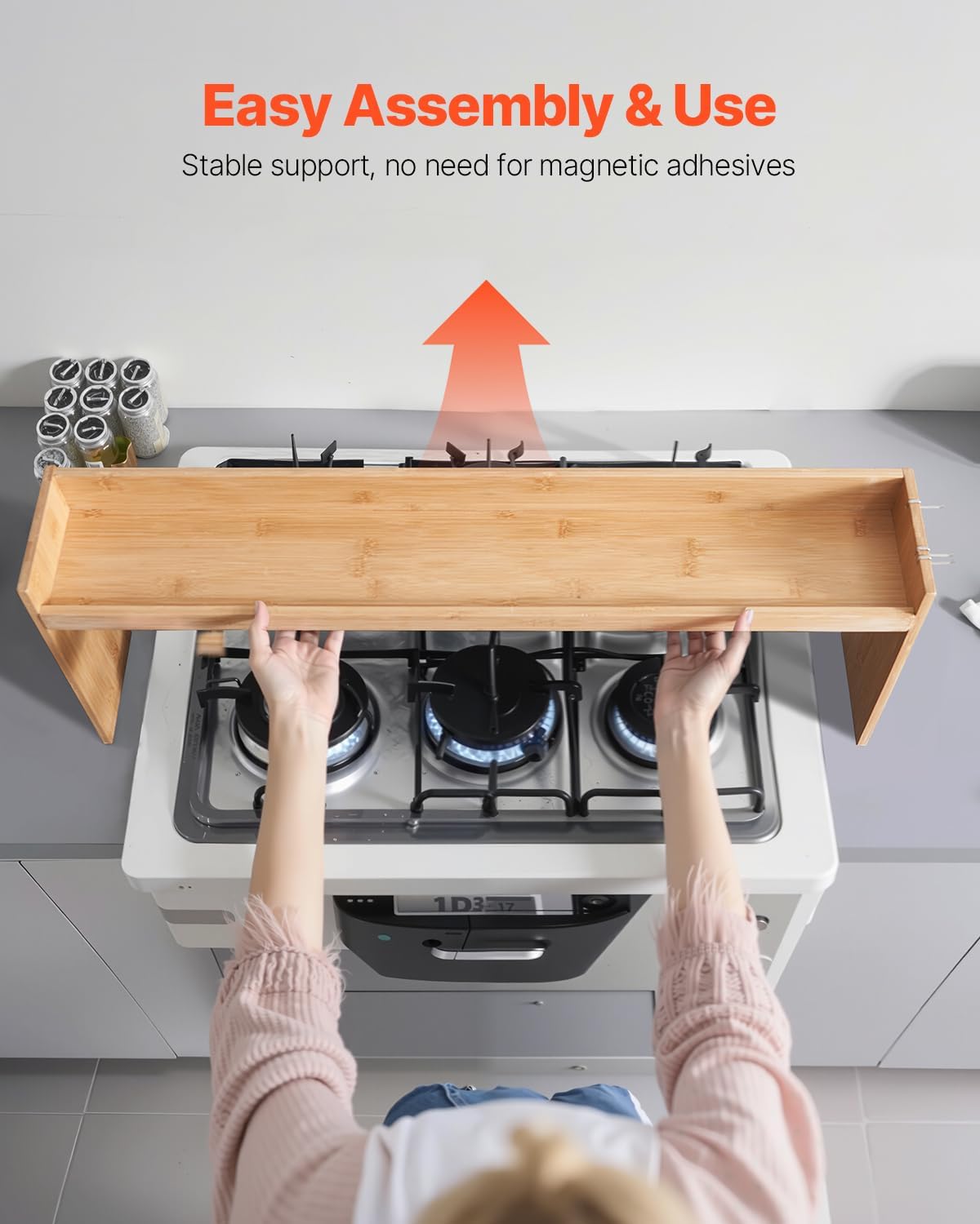 Easy Installation and Maintenance: Assembly takes just a few minutes. Once assembled, our countertop storage solution rack can be placed directly above the stovetop, allowing for easy repositioning or removal. The surface is easy to wipe clean, making it simple to maintain and keep looking neat for long-term use