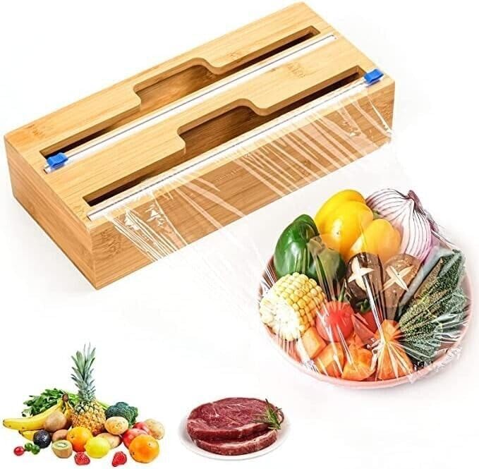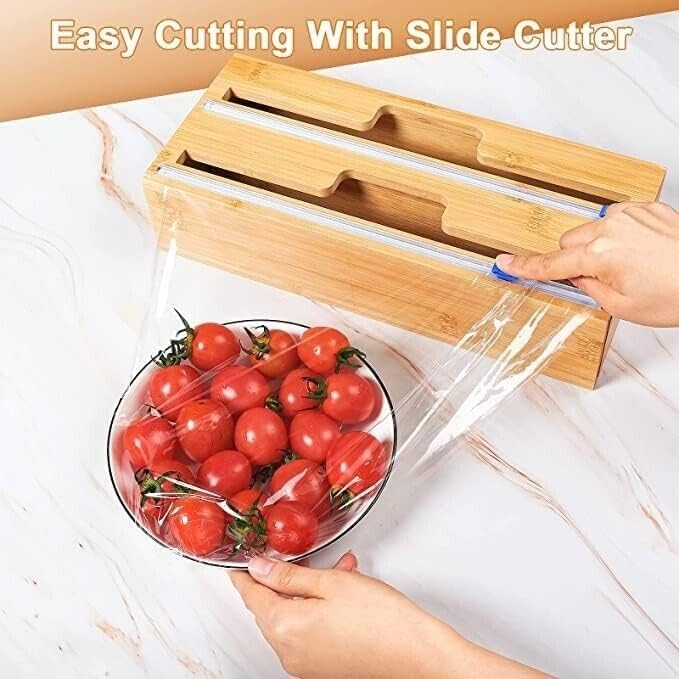 Smooth Slide Cutter: Built-in slide cutter delivers clean, precise cuts without mess or tangled wraps.Space-Saving Design: Slim profile fits easily into kitchen drawers, maximizing your storage space and keeping counters clutter-free.