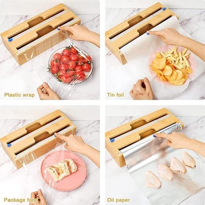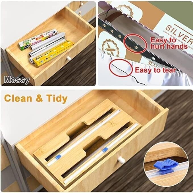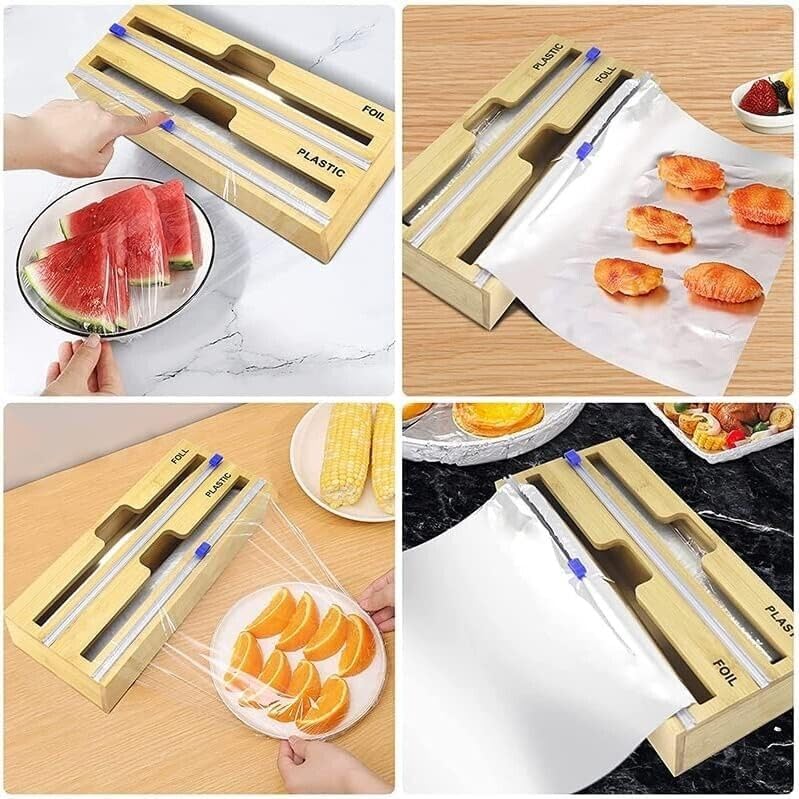 2-in-1 Convenience: Organize both aluminum foil and plastic wrap in one compact bamboo dispenser for a neat, efficient kitchen.