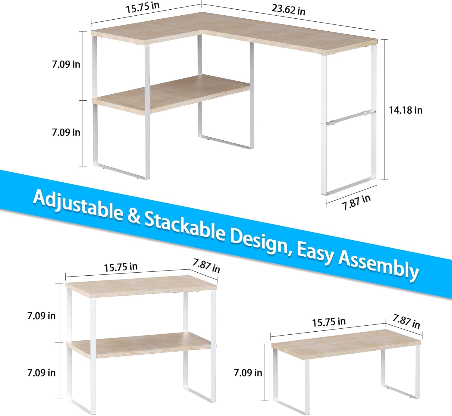 EFFORTLESS KITCHEN CORNER COUNTERTOP ORGANIZER: Transform your kitchen with this versatile kitchen countertop organizer, ideal for spices, utensils, and small appliances. Whether used as a counter shelf organizer, or corner spice rack for countertop, this kitchen counter organizer provides sturdy construction and a sleek design. It offers easy installation, larger storage capacity, and an elegant solution for any kitchen counter stand space.
