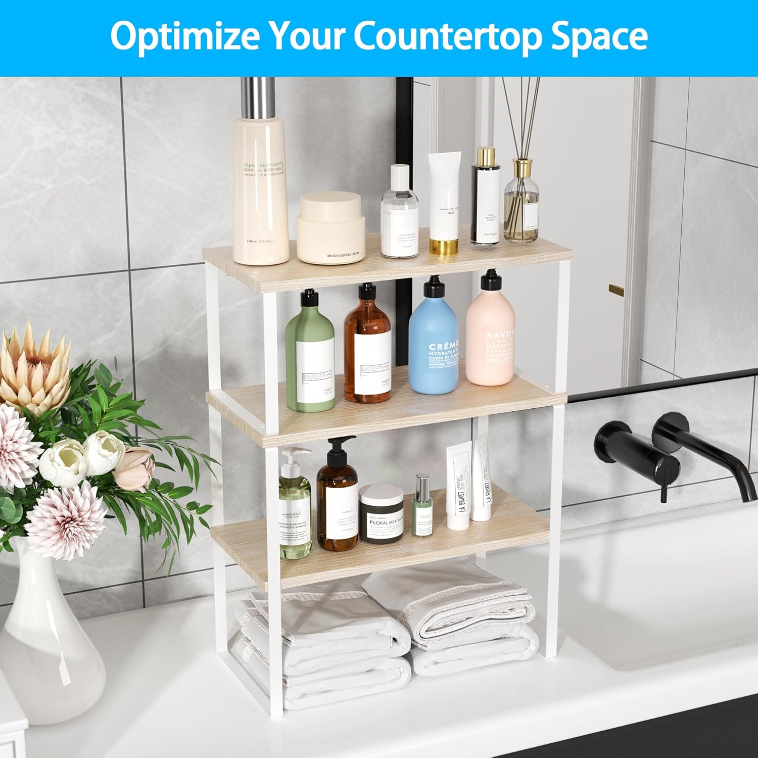 STYLISH AND DURABLE DESIGN: Featuring premium engineered wood, polished metal corner shelf and a modern look, this corner countertop organizer blends into kitchens, bathrooms, and other rooms effortlessly. Its stability and long-lasting construction ensure it outperforms competitors, whether as a corner kitchen cabinet organizer or corner shelf bathroom countertop.