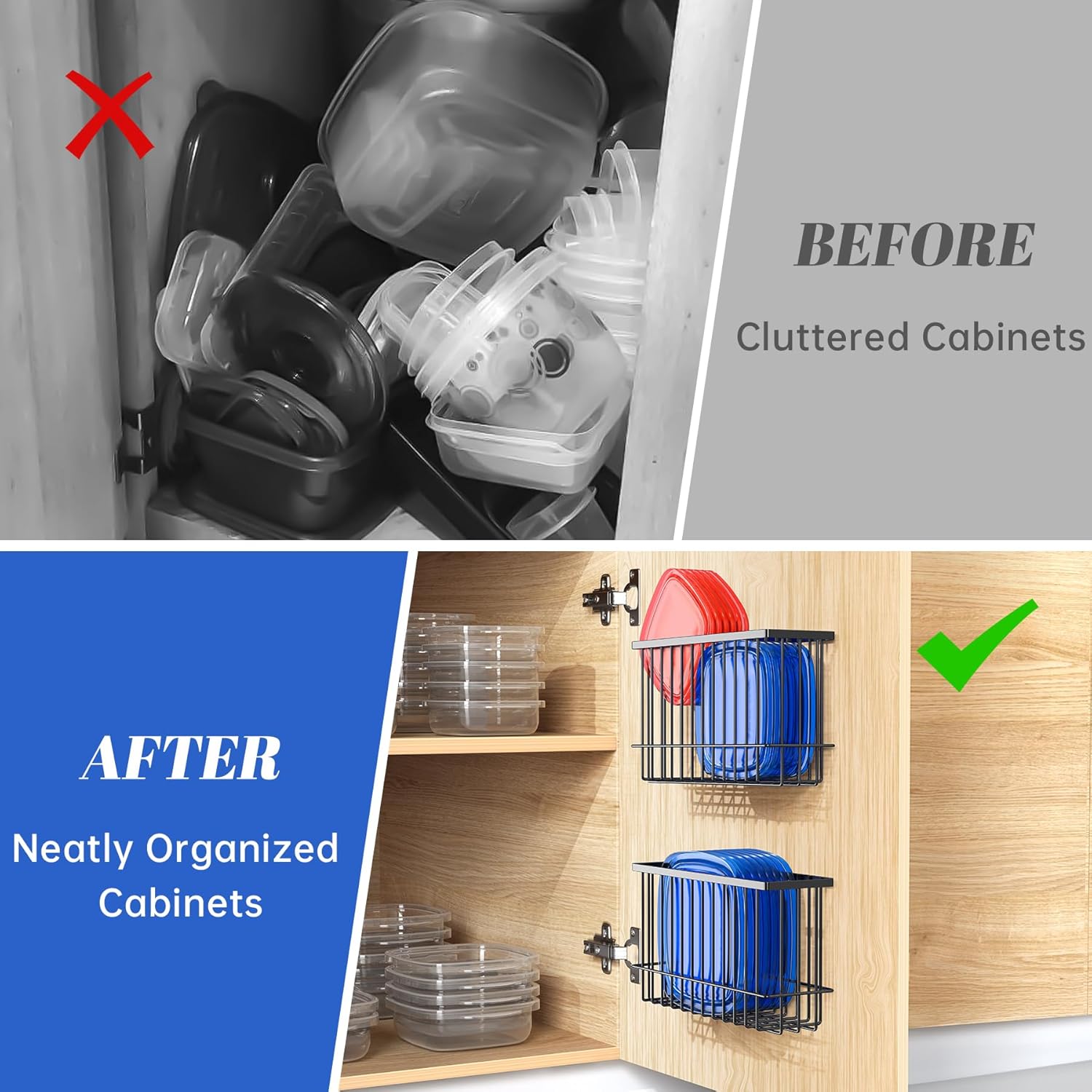 【Multi-Functional Design】 More than a holder for package box lids, this cabinet door lid organizer efficiently manages diverse items and household supplies, providing a variety of storage solutions to fulfill your unique needs.