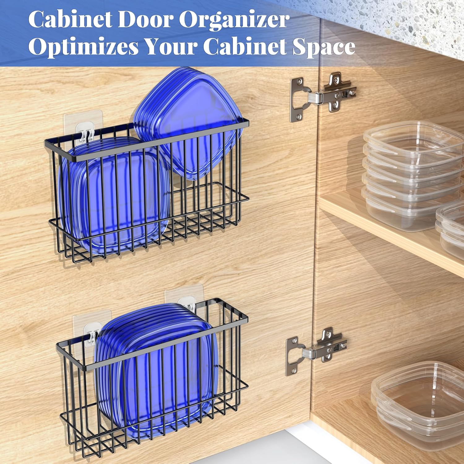 【Effortless Setup】Our cabinet door organizer comes ready for hassle-free installation, eliminating complex assembly steps. Just peel off the adhesive backing for easy setup and immediate use.