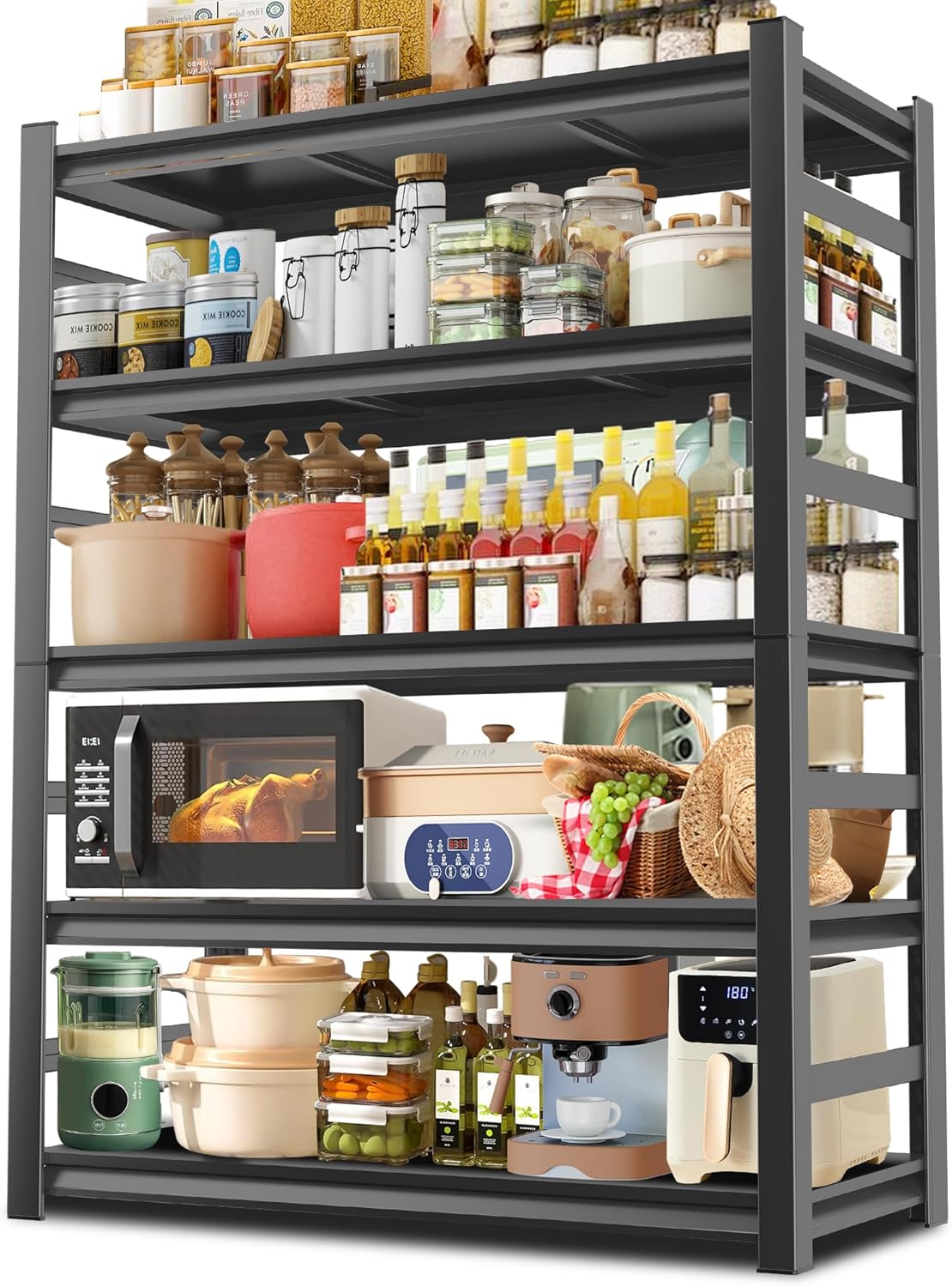 【Holds 2500LBS Oversized Kitchen Storage Shelf】LEARISO Kitchen Shelves is made of thickened metal material, with a total load capacity of 2,500lbs, which can store your kitchen supplies more sturdily. 35.4” wide storage shelf provides plenty of space for kitchen utensils such as microwaves, toasters, and juicers. It is more than capable of meeting the storage needs of large families for vegetables, fruits, plates and other kitchen supplies.