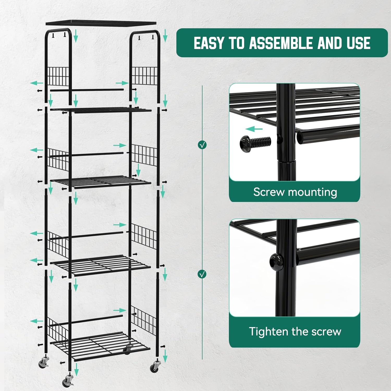 【 Easy Assembly】Assembly is a breeze with our storage racks. Designed with a simple structure, it can be easily disassembled and reassembled without the need for any tools. Clear, step by step installation instructions and numbered parts are included, allowing you to complete the assembly in just 15 minutes. To ensure your product arrives in perfect condition, we use premium packaging that protects it from damage during transportation.