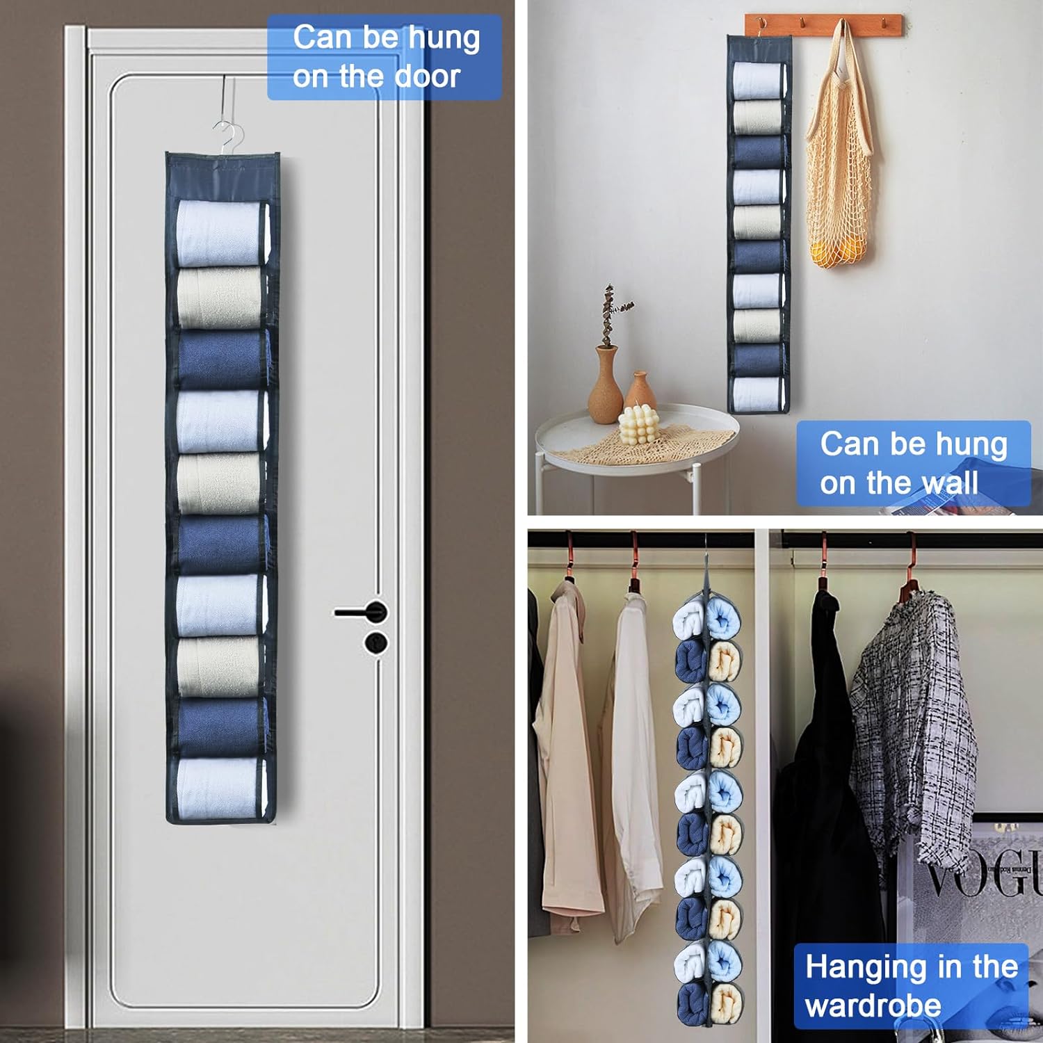 This legging organizer is perfect for various scenarios. It can be hung on the bedroom door, bathroom door, closet, or wardrobe, making it ideal for small apartments with cluttered closets or college dorm rooms.