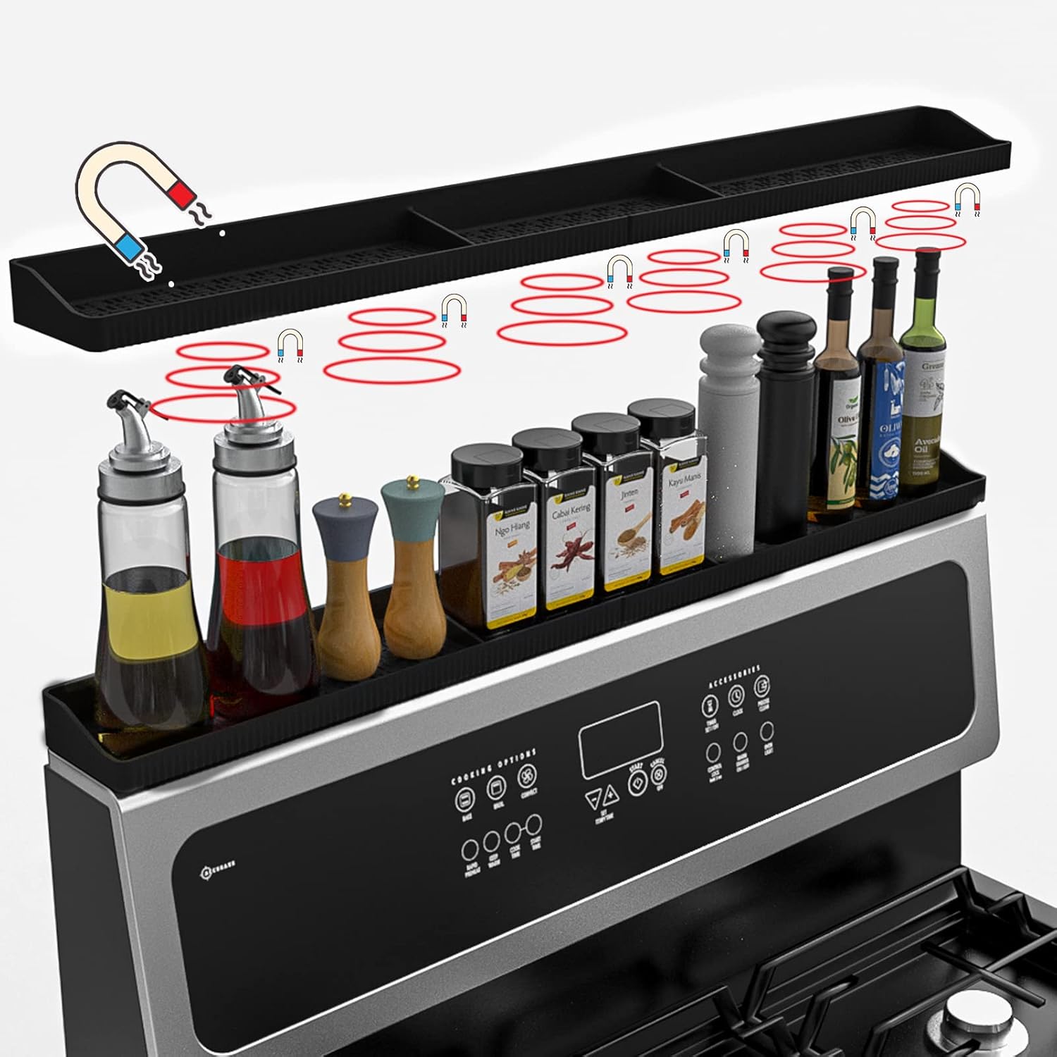 Magnetic Spice Rack for Top of StoveSuitable for Most Flat and Curved Stoves