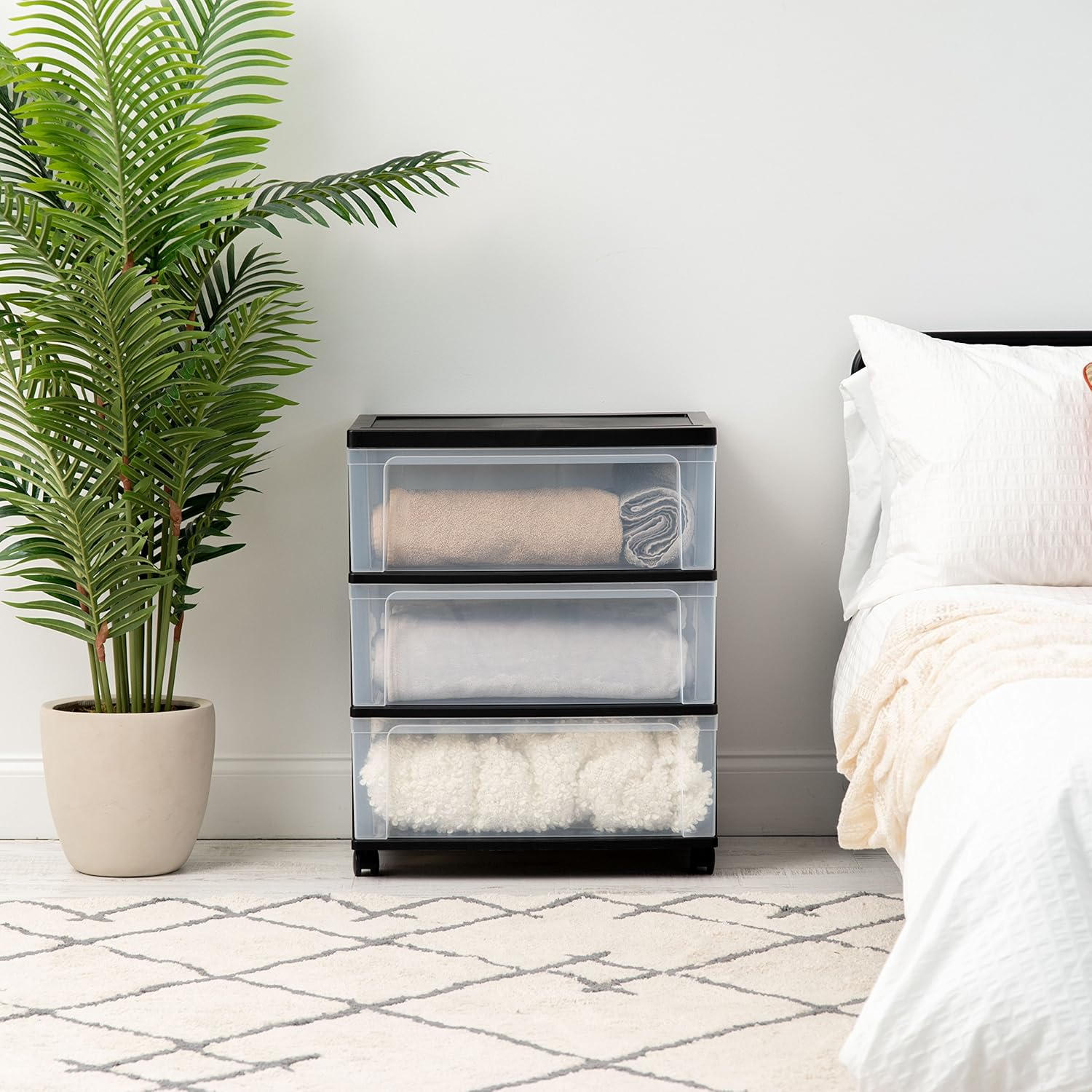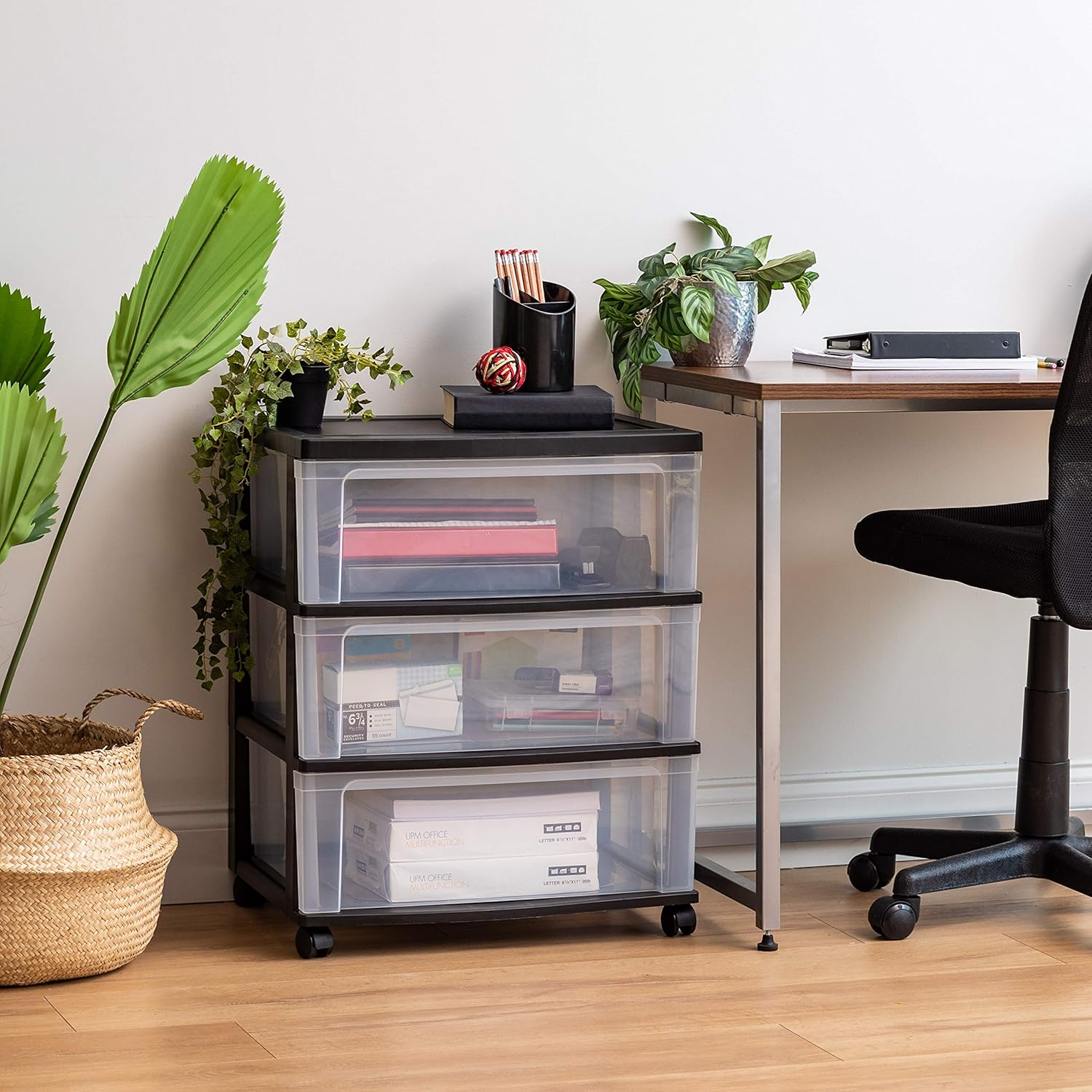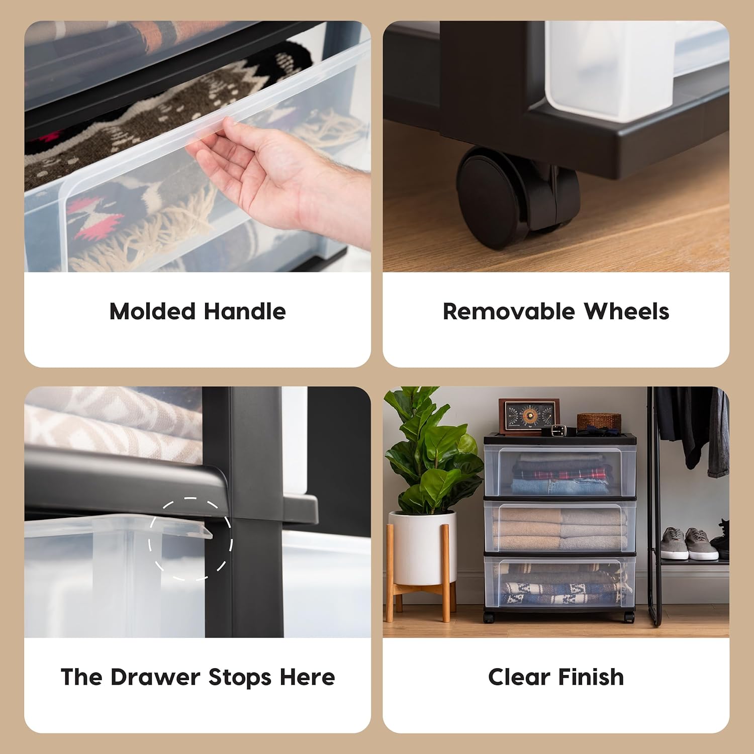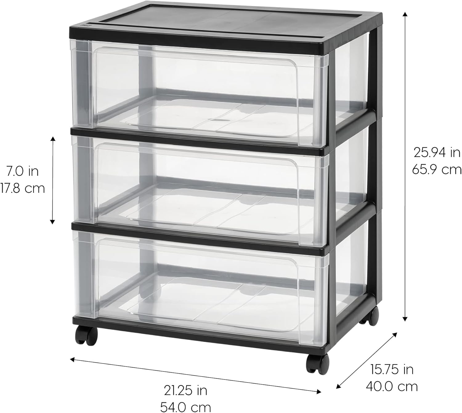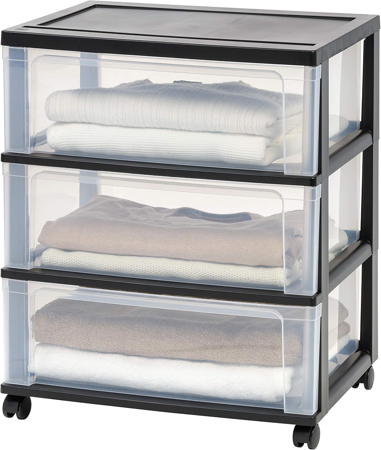 Tackle clutter and disorganization with the IRIS USA plastic wide drawer chest! This portable storage solution allows you to quickly access contents with the easy-pull drawers, and the built-in drawer-stops prevent the drawers from falling out when opened. Featuring removable caster wheels, you can use this drawer cart as an easy way to transport many things between rooms or create a more permanent, stationary storage solution for your space; the choice is yours! These drawers are perfect for everything, from clothing to linens, to crafts and hobby supplies and more. Let’s make life a little easier.