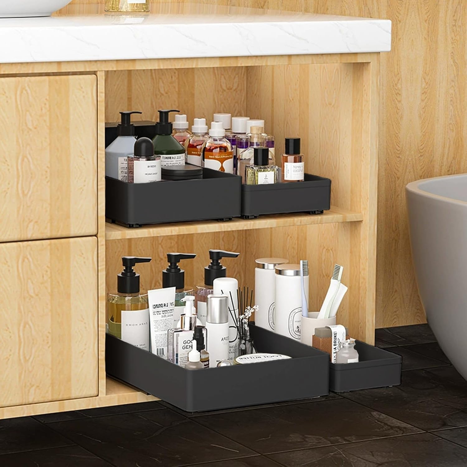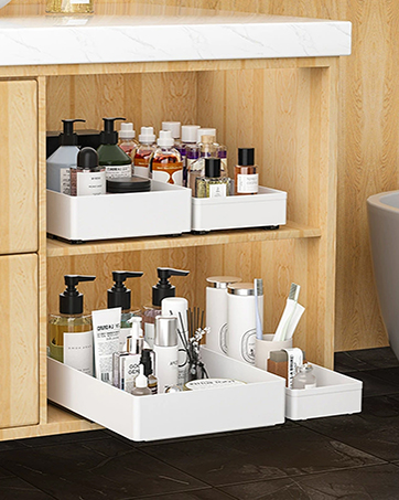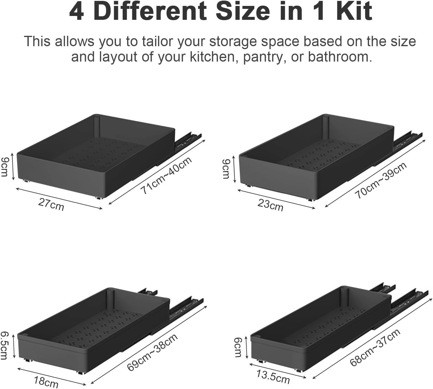 MULTI-PURPOSE USE FOR VARIOUS STORAGE NEEDS: These versatile pull-out drawers are perfect for a wide range of uses around the home. Whether you need extra storage for cosmetics, toiletries, snacks, cleaning supplies, or kitchen utensils, these drawers help keep everything organized. Suitable for installation in cabinets, under sinks, or in pantry shelves, they provide an efficient solution to reduce clutter and maximize available storage space