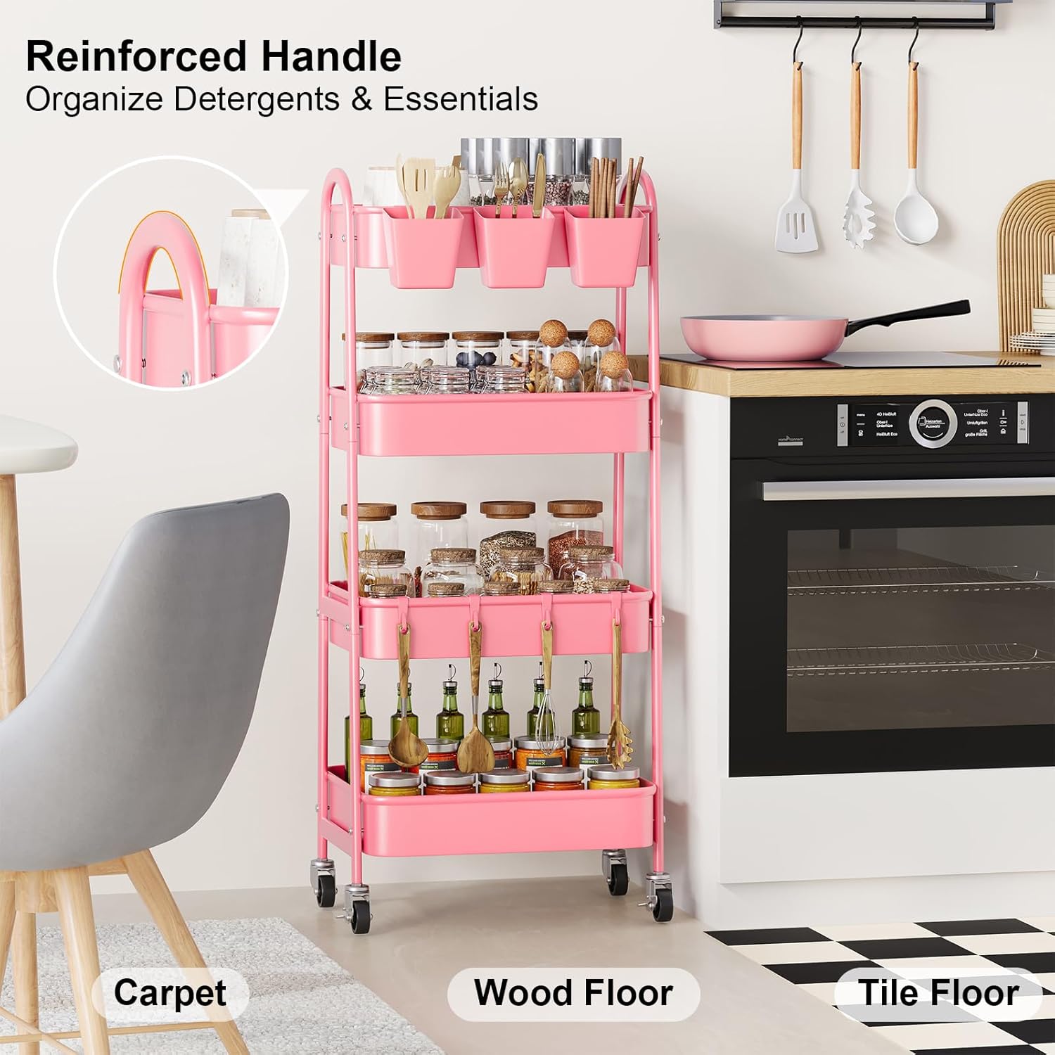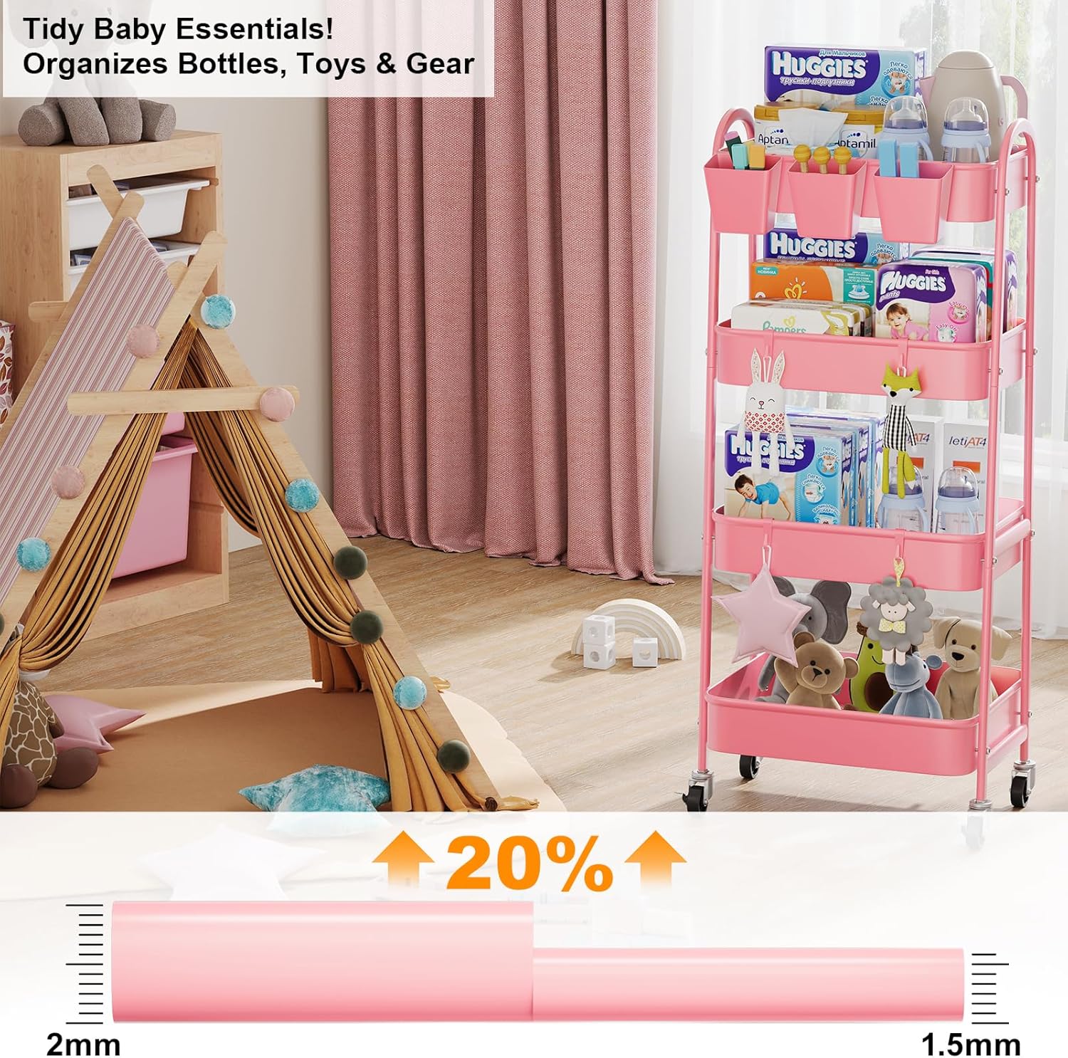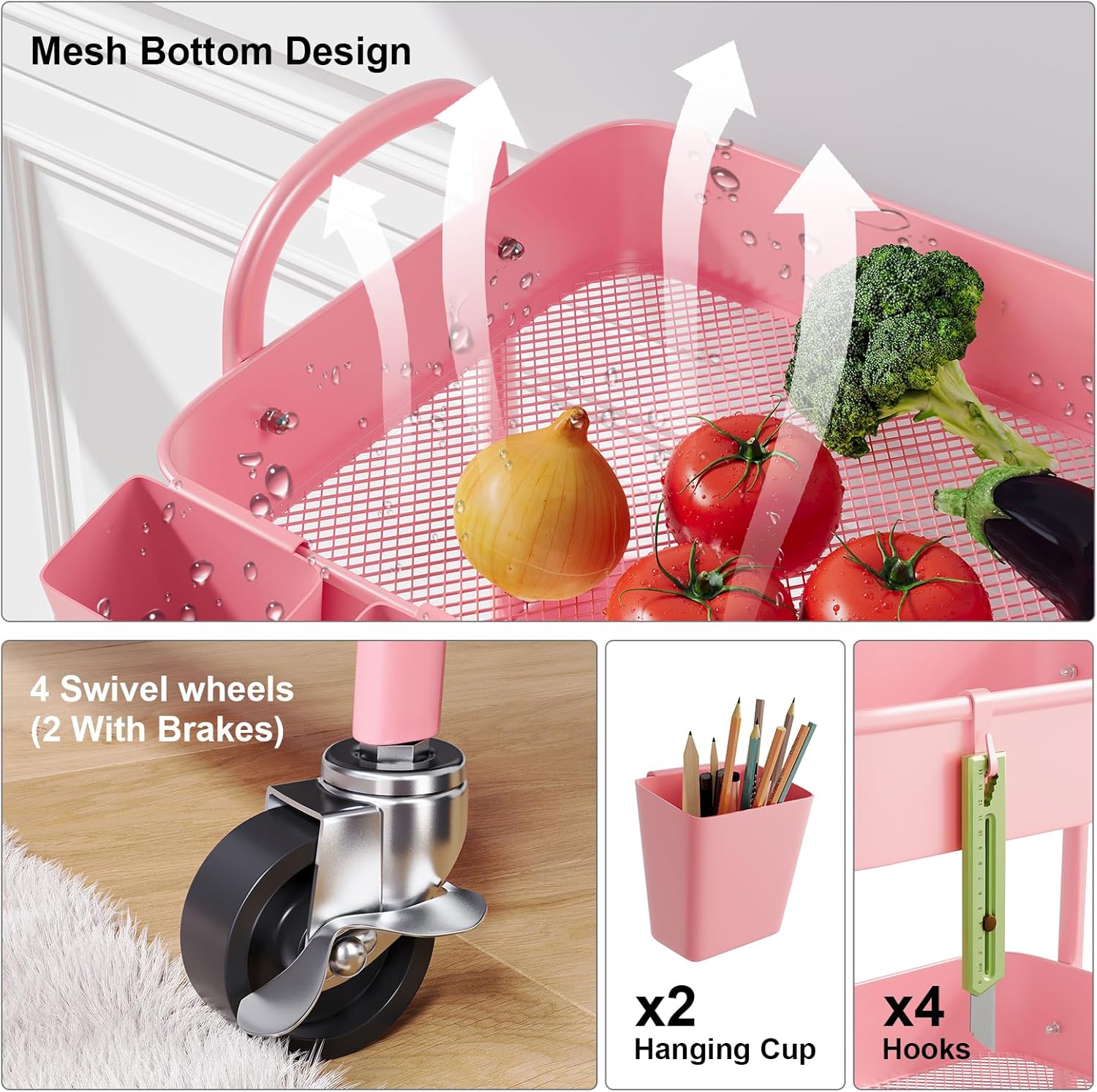 【Multi-Functional】This rolling cart serves the purposes of kitchen cart, bathroom cart, cleaning cart, nail cart, lash cart, baby diaper cart, art craft cart, etc.
