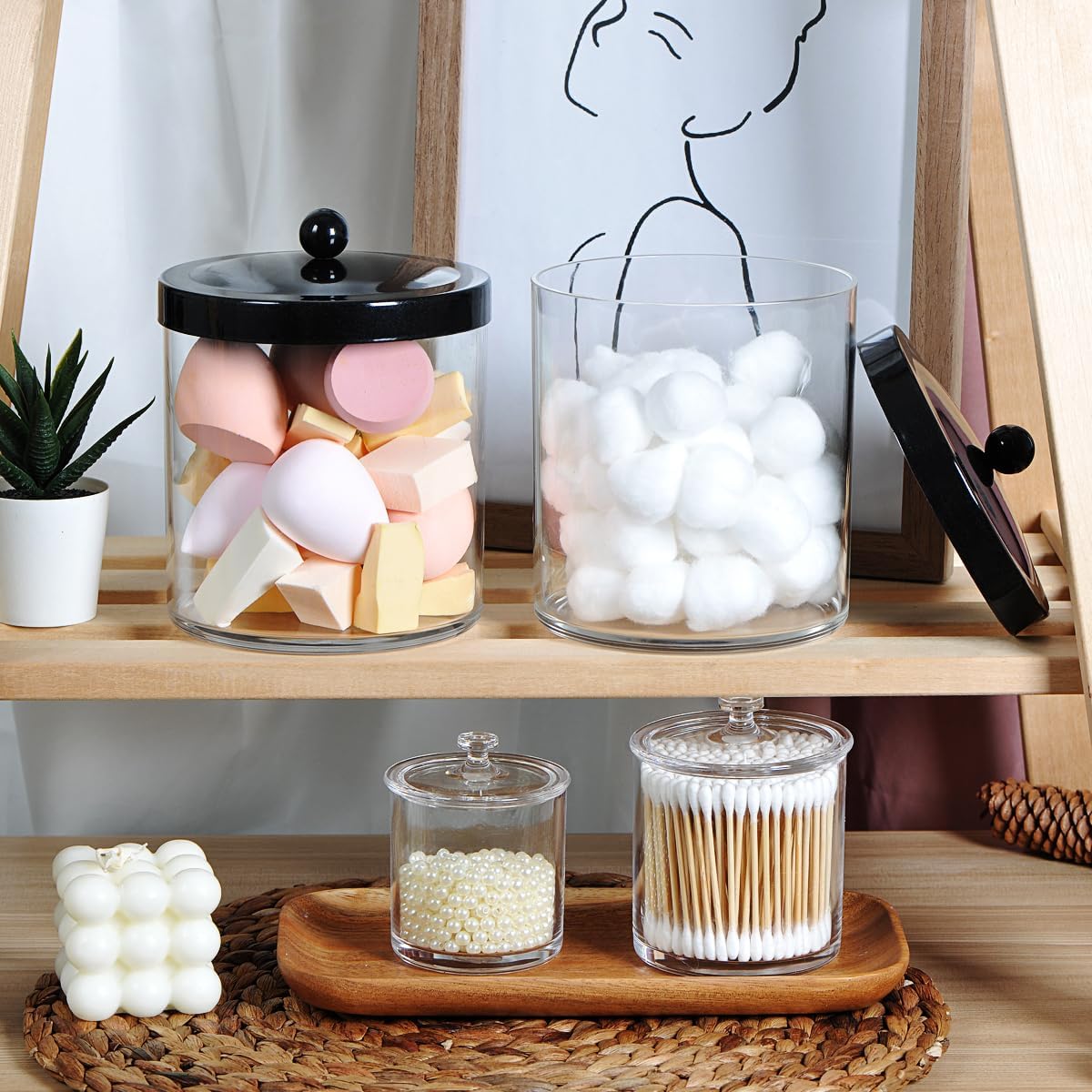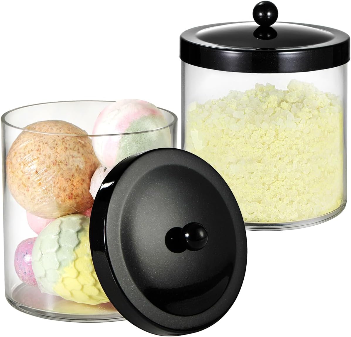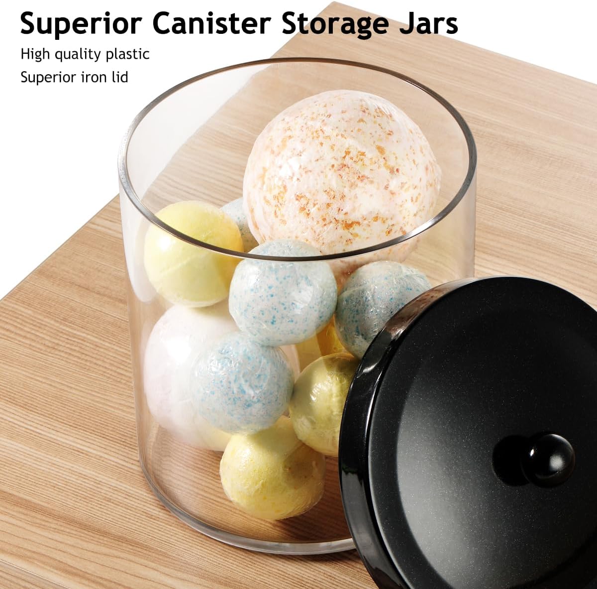✅【Plastic Apothecary Jars & Metal Lids】Our bath salt containers are made of clear plastic with gold metal lids. It’s easy to quickly find essential items in the bathroom, laundry supplies in the laundry room, or candy jars in the pantry. Transparent jars make us to clearly know what’s in your jar, even in the corner of the countertop.Create a clutter-free, stylish space today!