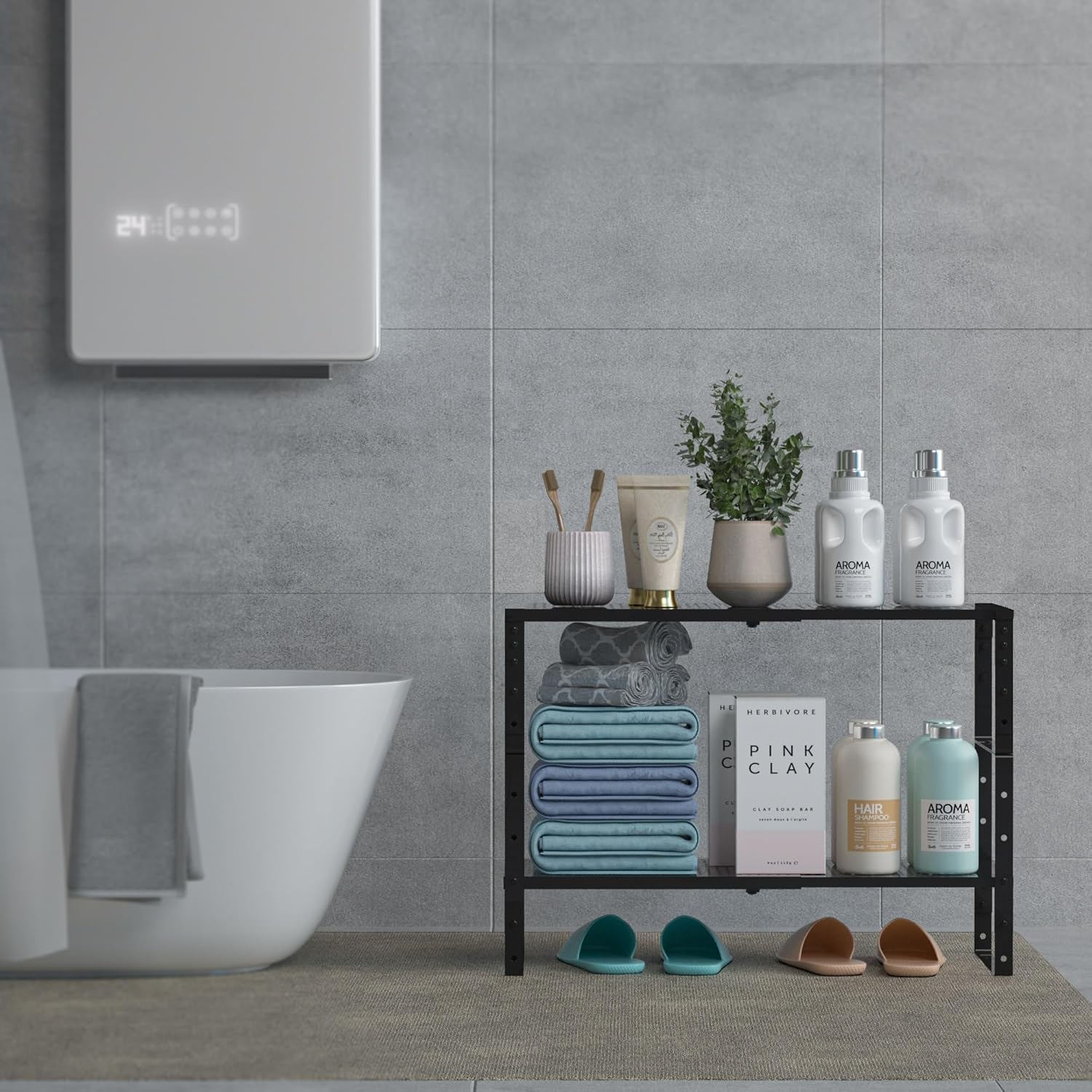 ⭐【Easy Installation】The installation and removal process of this shelf is very simple, requiring no complex tools and professional skills. You can adjust the layout and height of the shelf at any time according to your needs,convenient and fast.