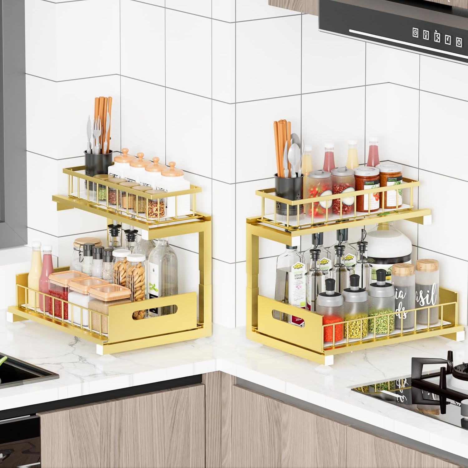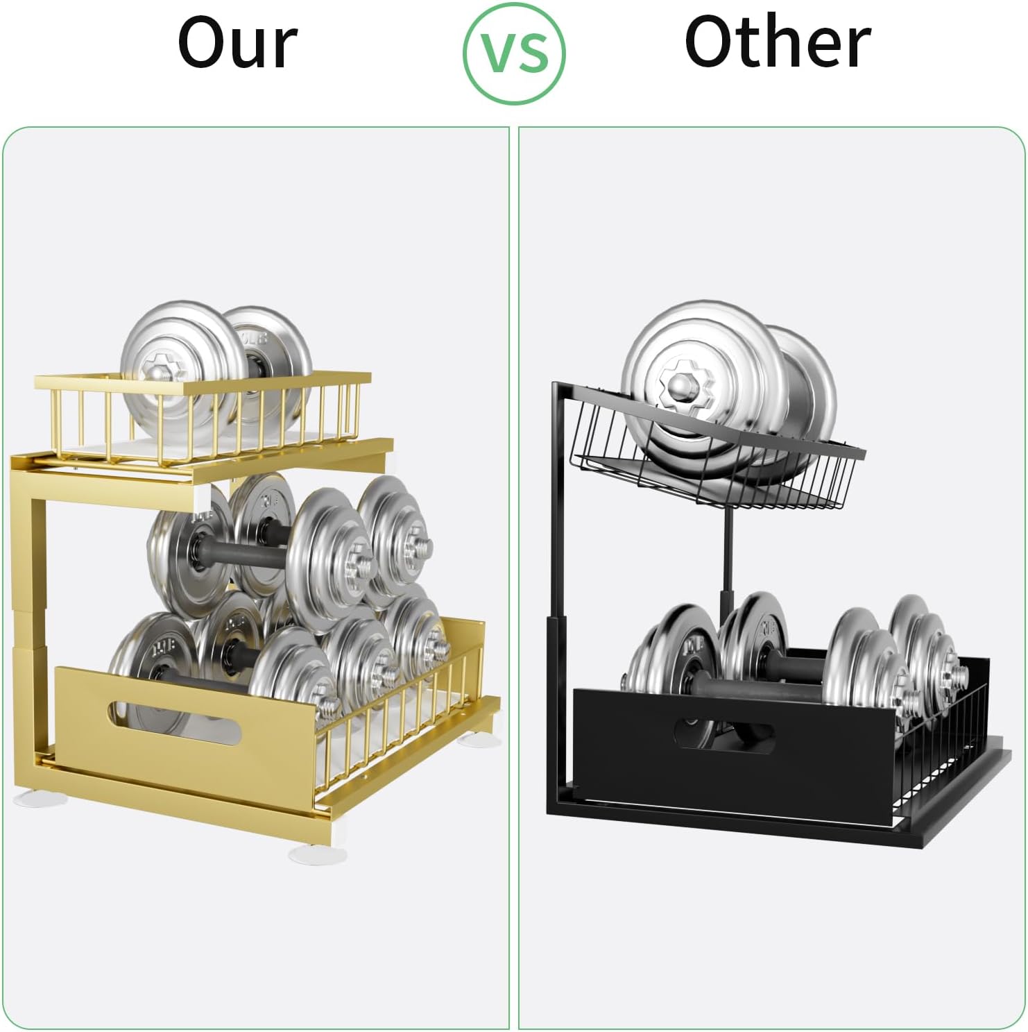 ✅ Slide-Out Trays with Safety Stoppers – Smooth pull-out baskets prevent accidental spills; limited stoppers keep trays securely in place.