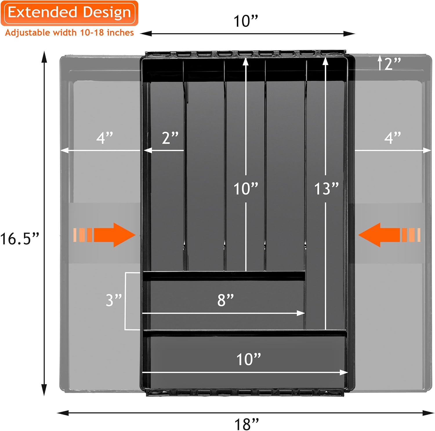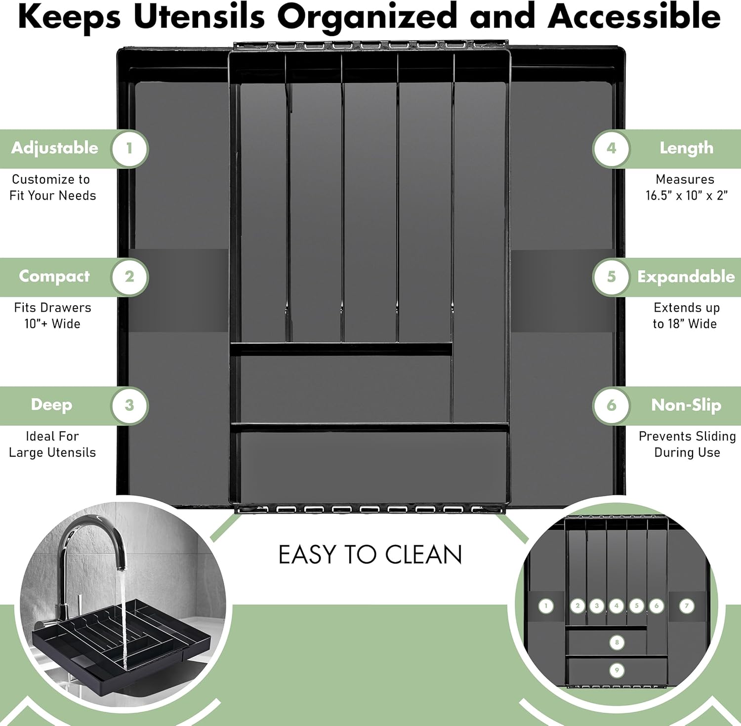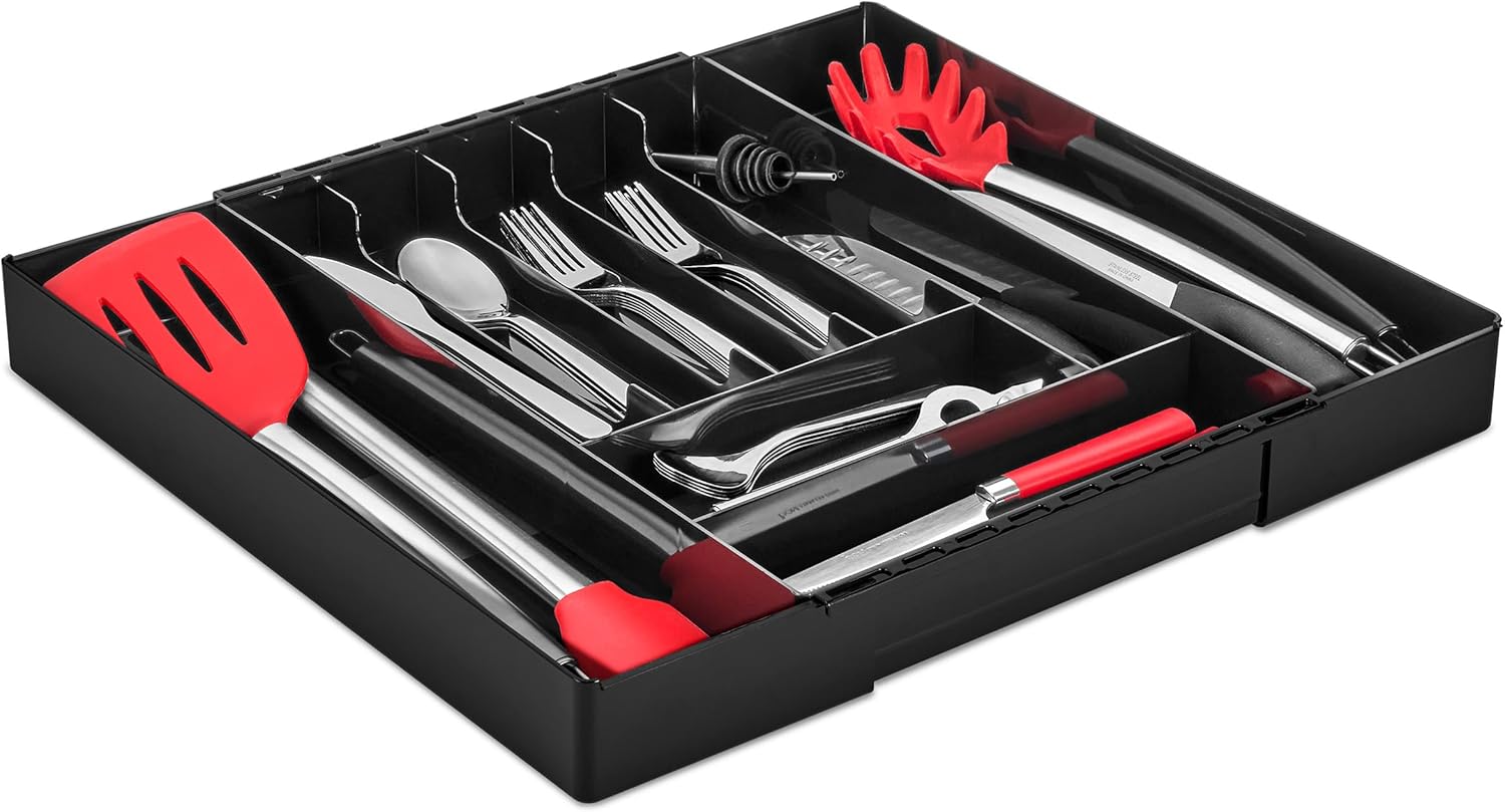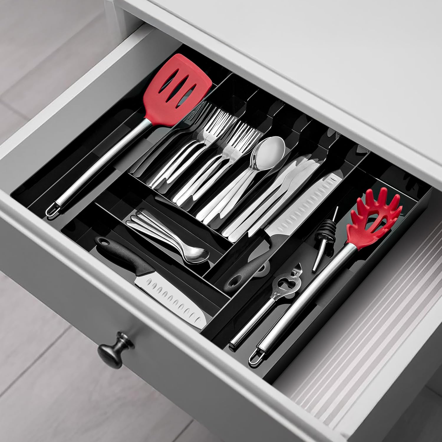 Sorbus Expandable Silverware Drawer Organizer: Customizable silverware storage is designed to expand to fit your kitchen drawer. Organizer features 7 main compartments of various sizes and 2 expandable side slots.