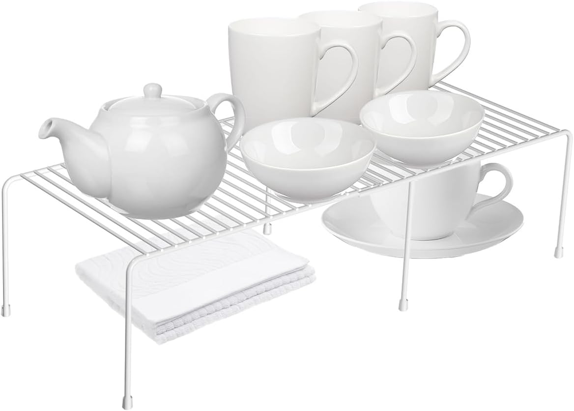Shelf Organizer double up your space by create extra storage space above and below. Height of 5.6” creats perfect storage space for your bowls, dishes, spice jars, cups, plates, coffee, sugar and syrup bottles. Anti-Slip Feet