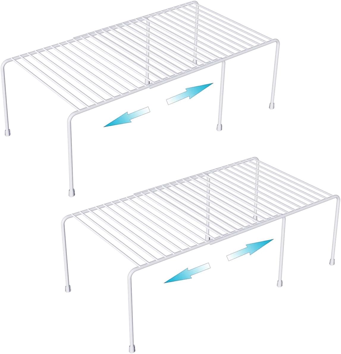 Maximize cabinet space and organize your kitchen. Perfect solution to make your kitchen tidy and neatly, no more messy.Extendable from 11″ to 21.5″, perfect for your different needs in pantry, cabinet, countertop or under sink.Height of 5.6” creats perfect storage space for your bowls, dishes, spice jars, cups, plates, coffee, sugar and syrup bottles.Great way to make use of empty air space in your cupboards!