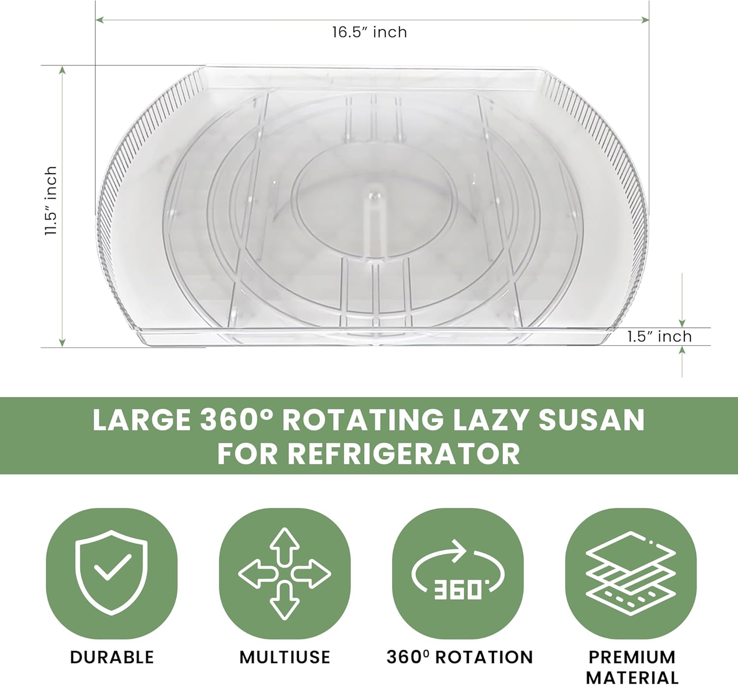 FIT MOST FRIDGES: With a perfect size of L16.5 x W11x H1.25, our refrigerator lazy susan fits most fridges. It’s also an ideal kitchen organizers and storage solution for cabinet, pantry & more.