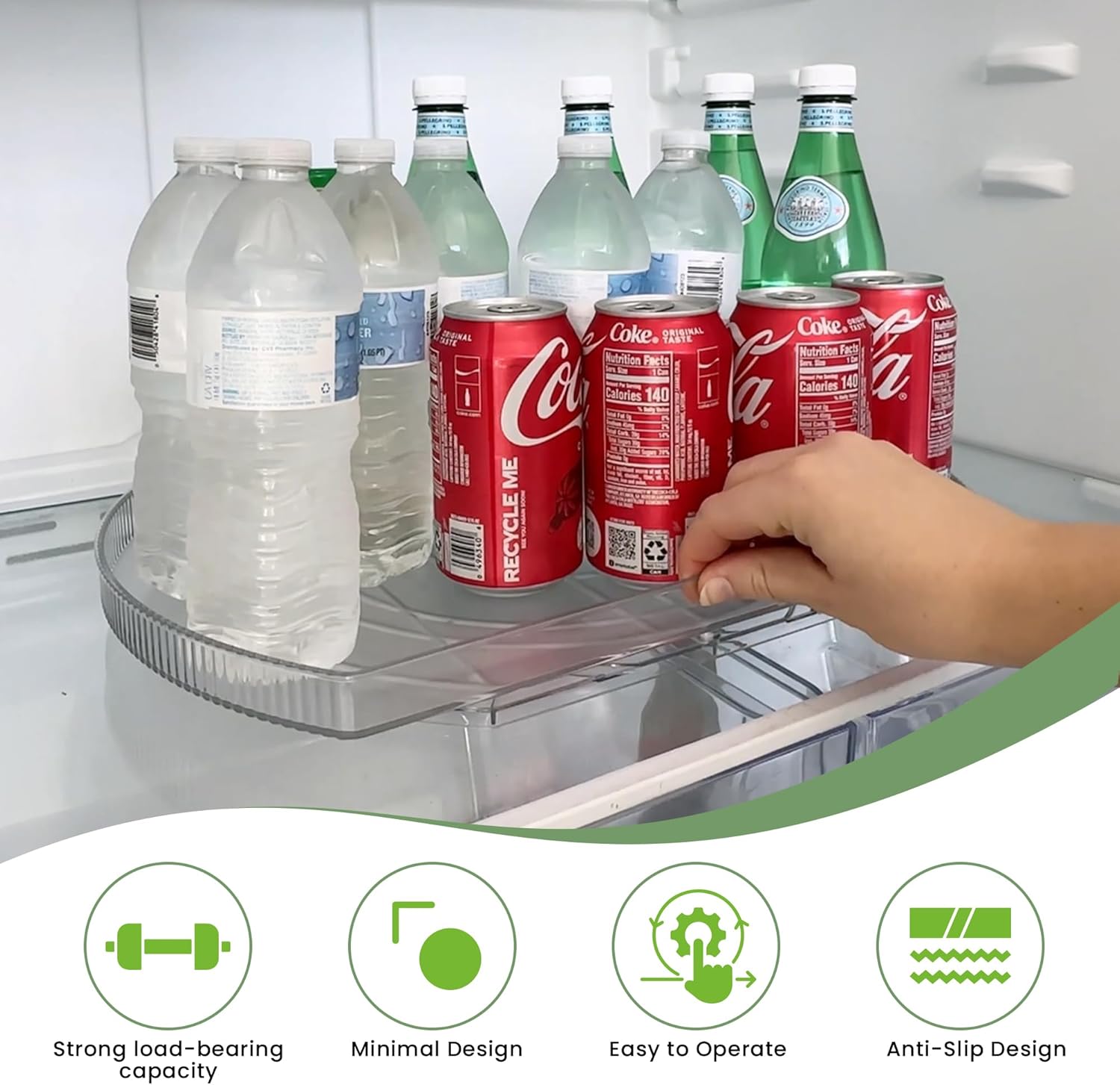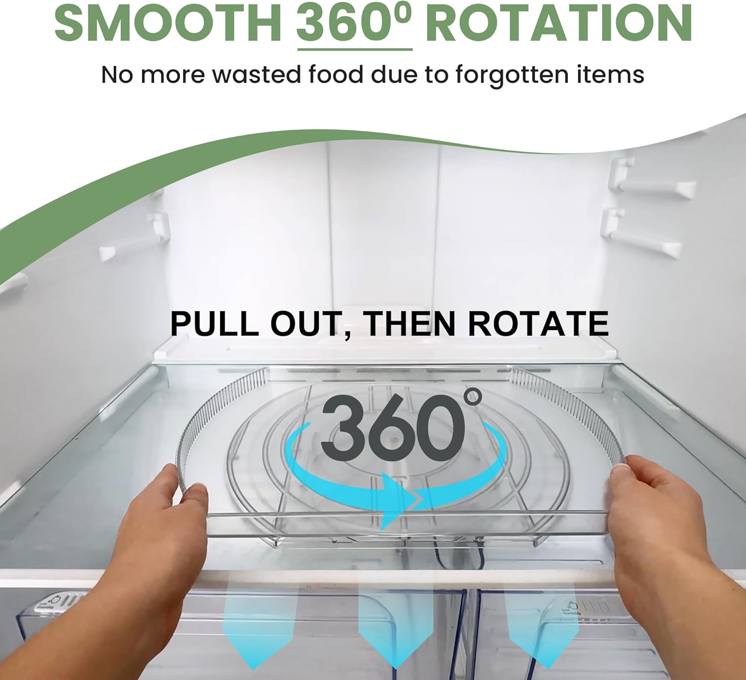 SMOOTH 360 ROTATION: Easily access items hidden at the back of your shelves by simply pulling and spinning the fridge turntable organizer. No more wasted food due to forgotten items.