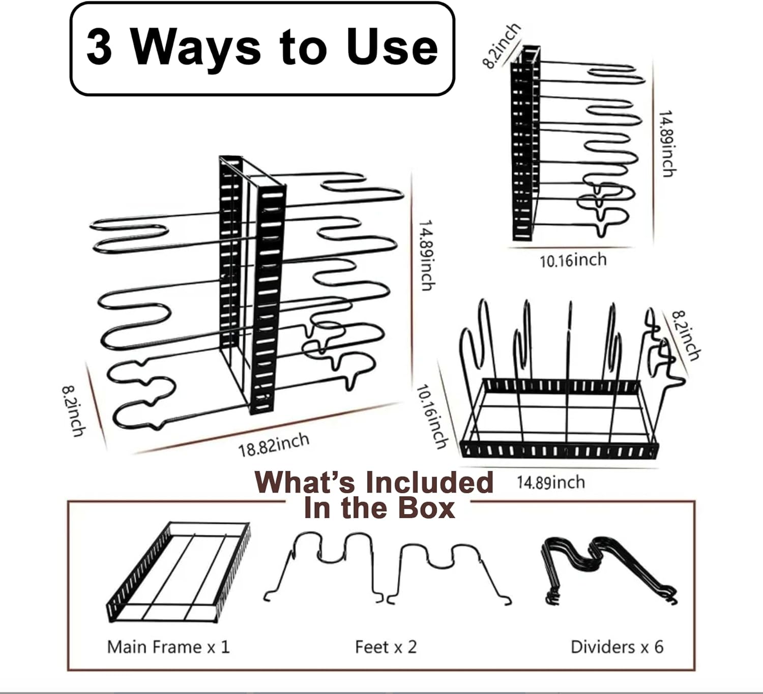 3 Configuration Options: Vertical or horizontal design allows you to organize your cookware no matter how your kitchen is set up.