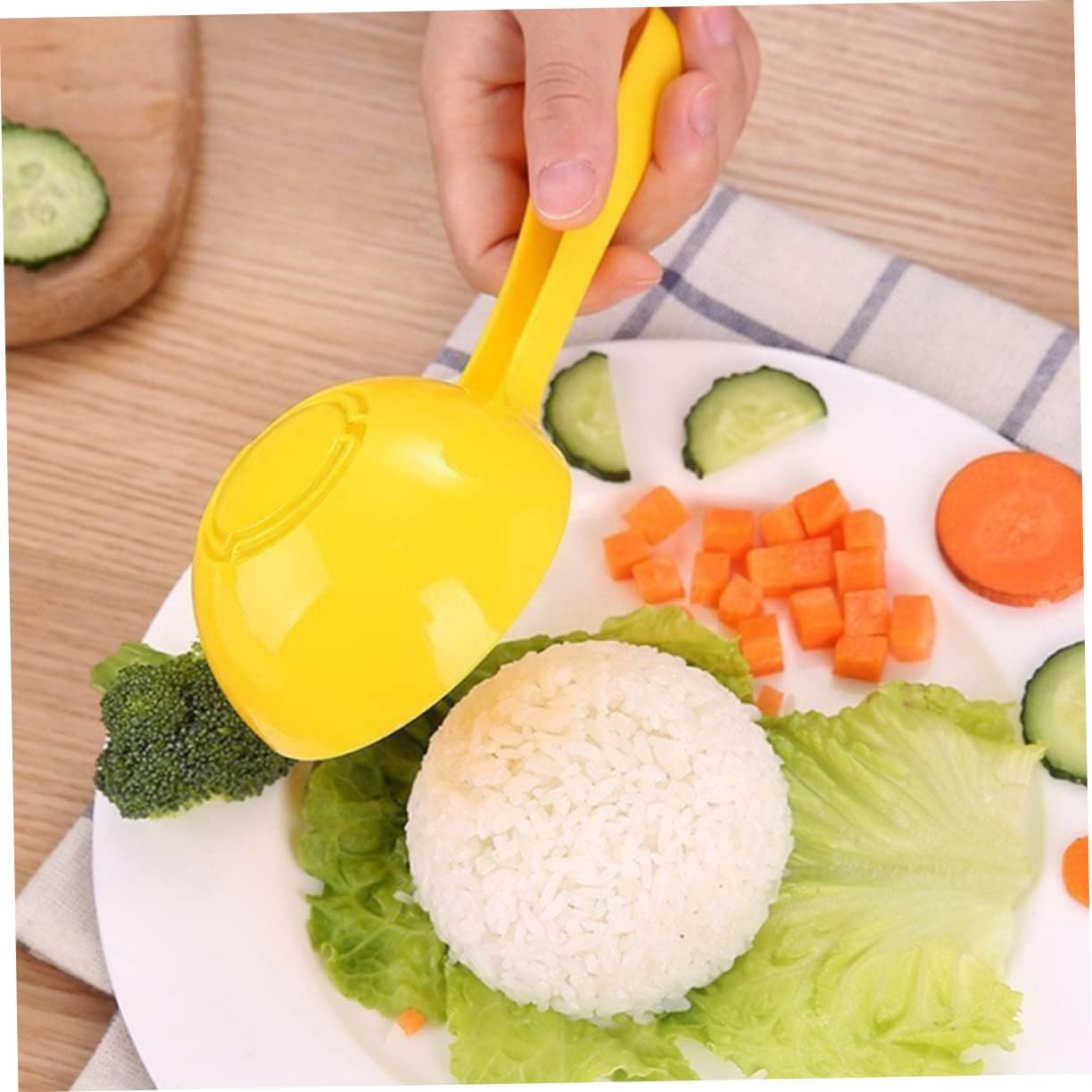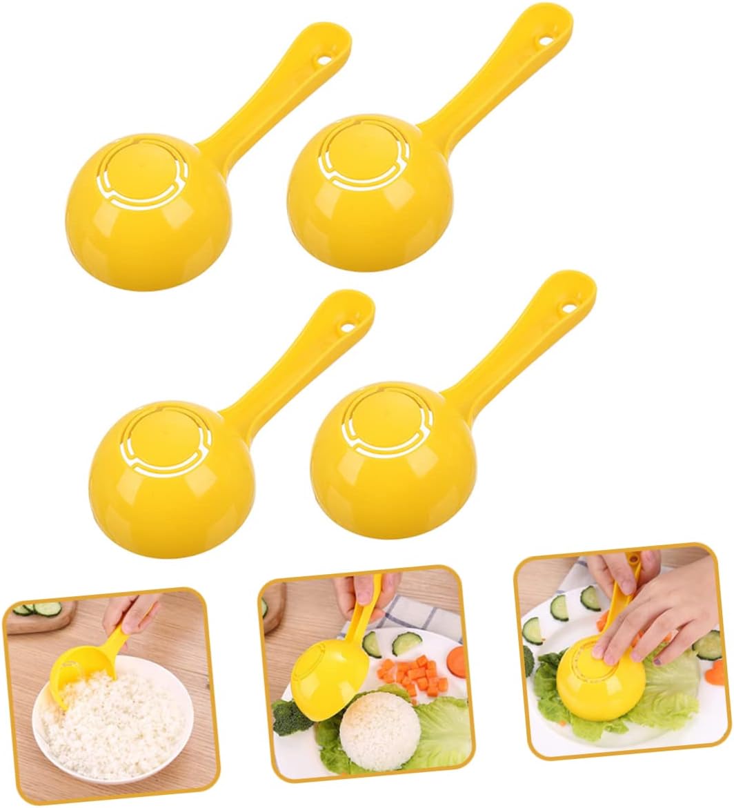 4pcs Half Round Rice Spoon Rice Scoops Egg Sushi Rice Mold Rice Server Spoon Rice Serve Spoons Asian Soup Spoon Serving Spoons for Sushi Kitchen Gadget Plastic Rice Spoons Yellow LALADEFIEE