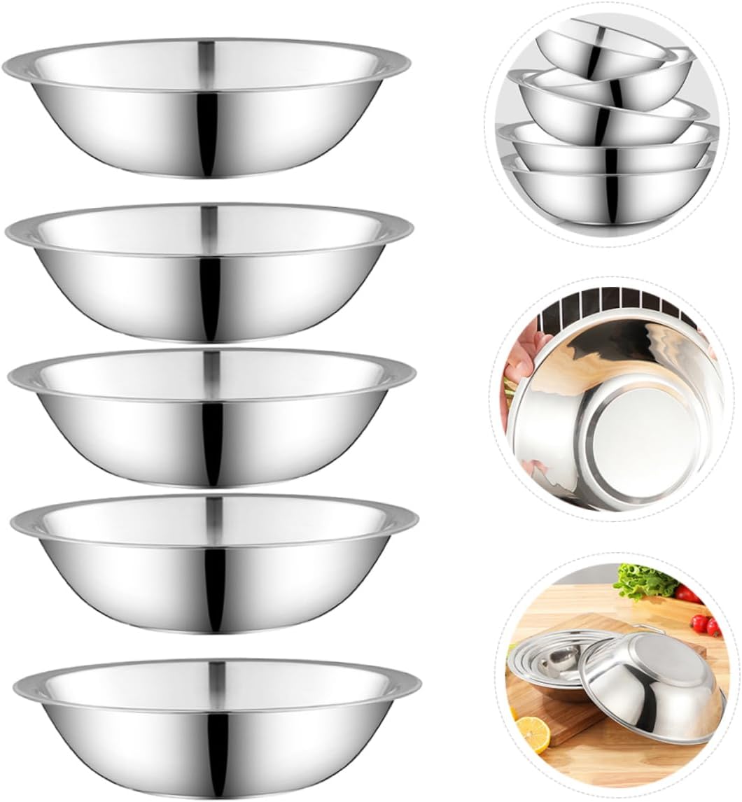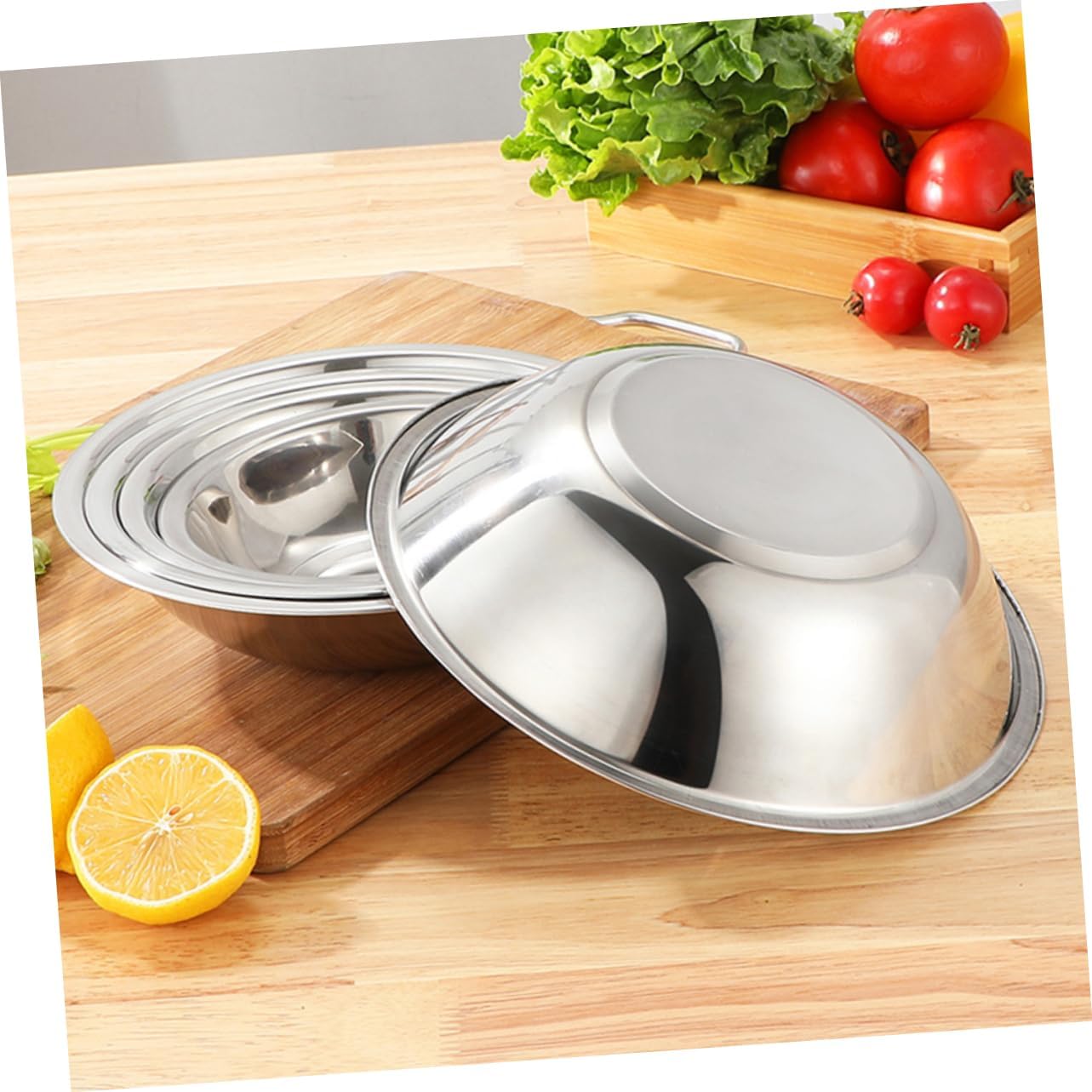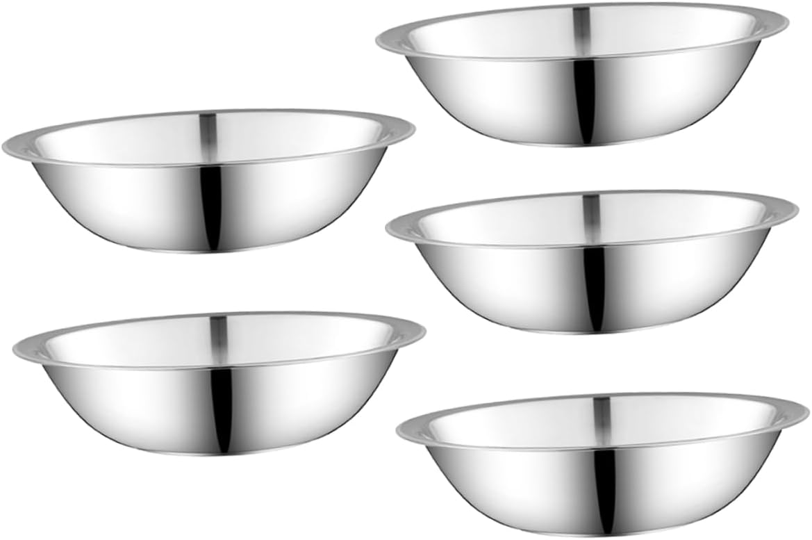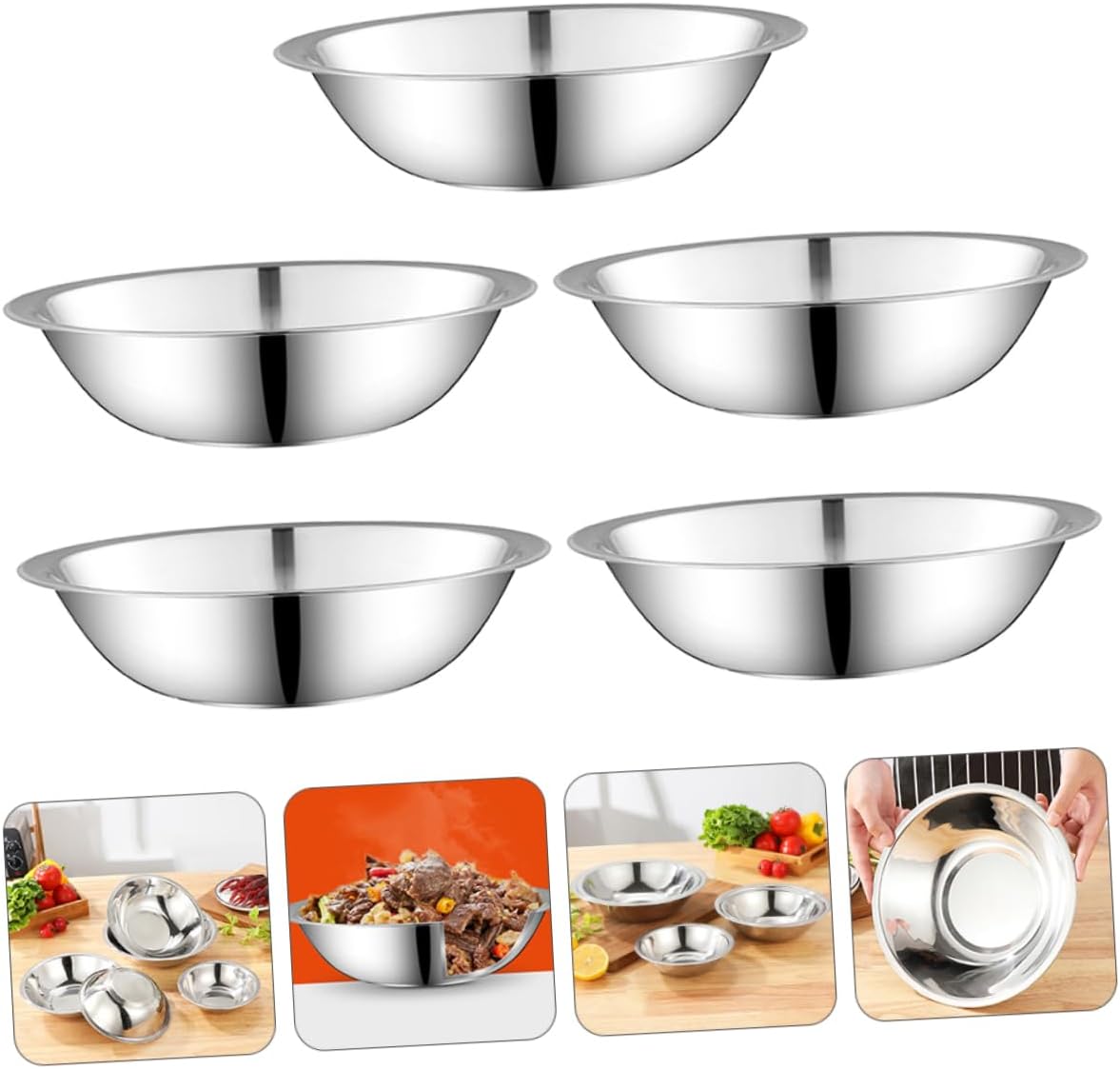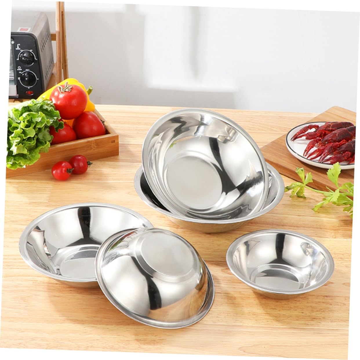 PRETYZOOM 5pcs Stainless Steel Mixing Bowls Deep Kitchen Food Basins for Salads Fruits and Seasoning Practical Kitchen Gadgets for Home and Restaurant Use