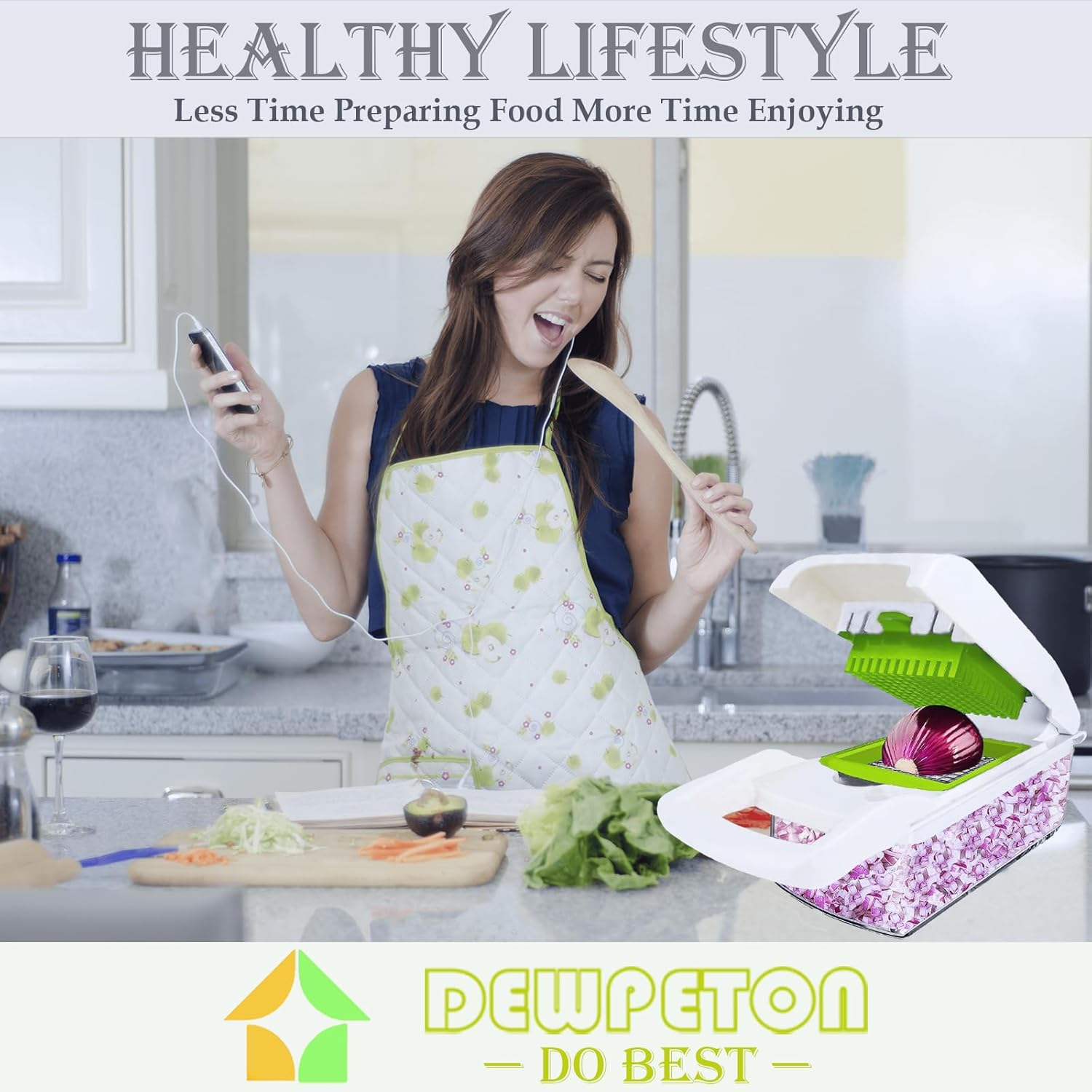 Unmatched Quality – The blades is made of 420 stainless steel using Dewpeton unique punching blade technology, razor sharp for crisp, smooth cuts and grating. Can create perfectly chopped onions, tomatoes, and peppers for salsa, or shred an entire cabbage for coleslaw in no time. The main body of the vegetable chopper is made from food-grade ABS plastic to guarante healthy meals for your family.